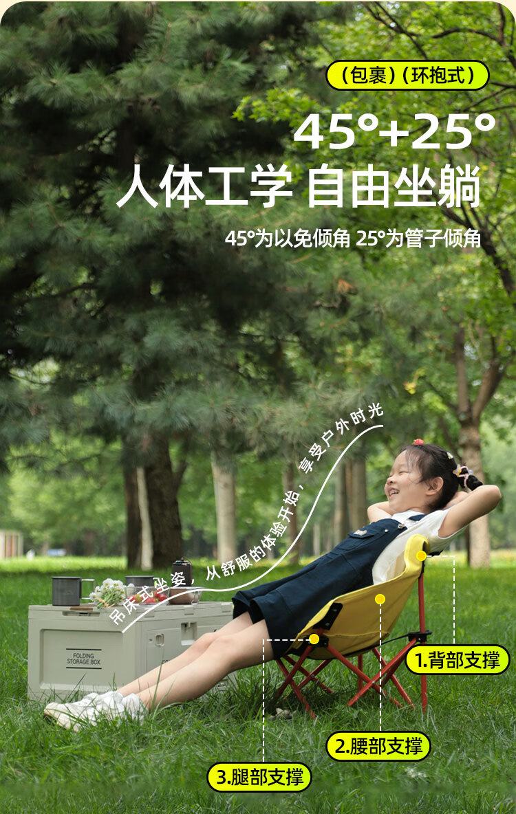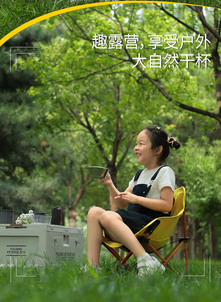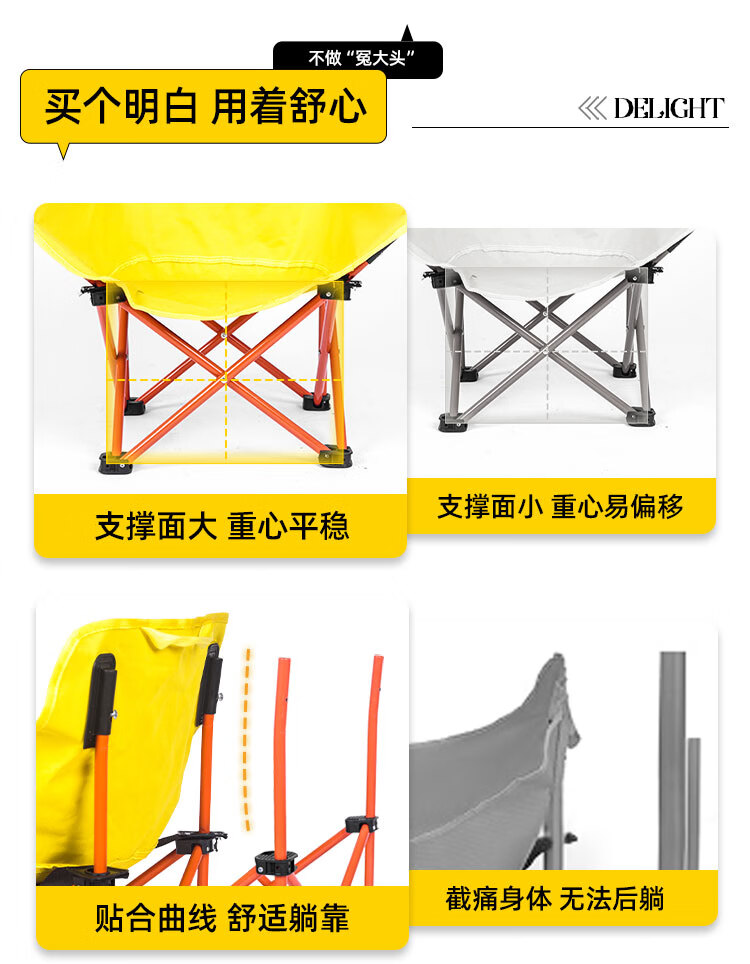 岩合户外月亮椅折叠椅 便携靠背钓鱼懒人椅 春游踏青露营蛋卷桌椅子 黄色-月亮椅【加固加厚经典款】