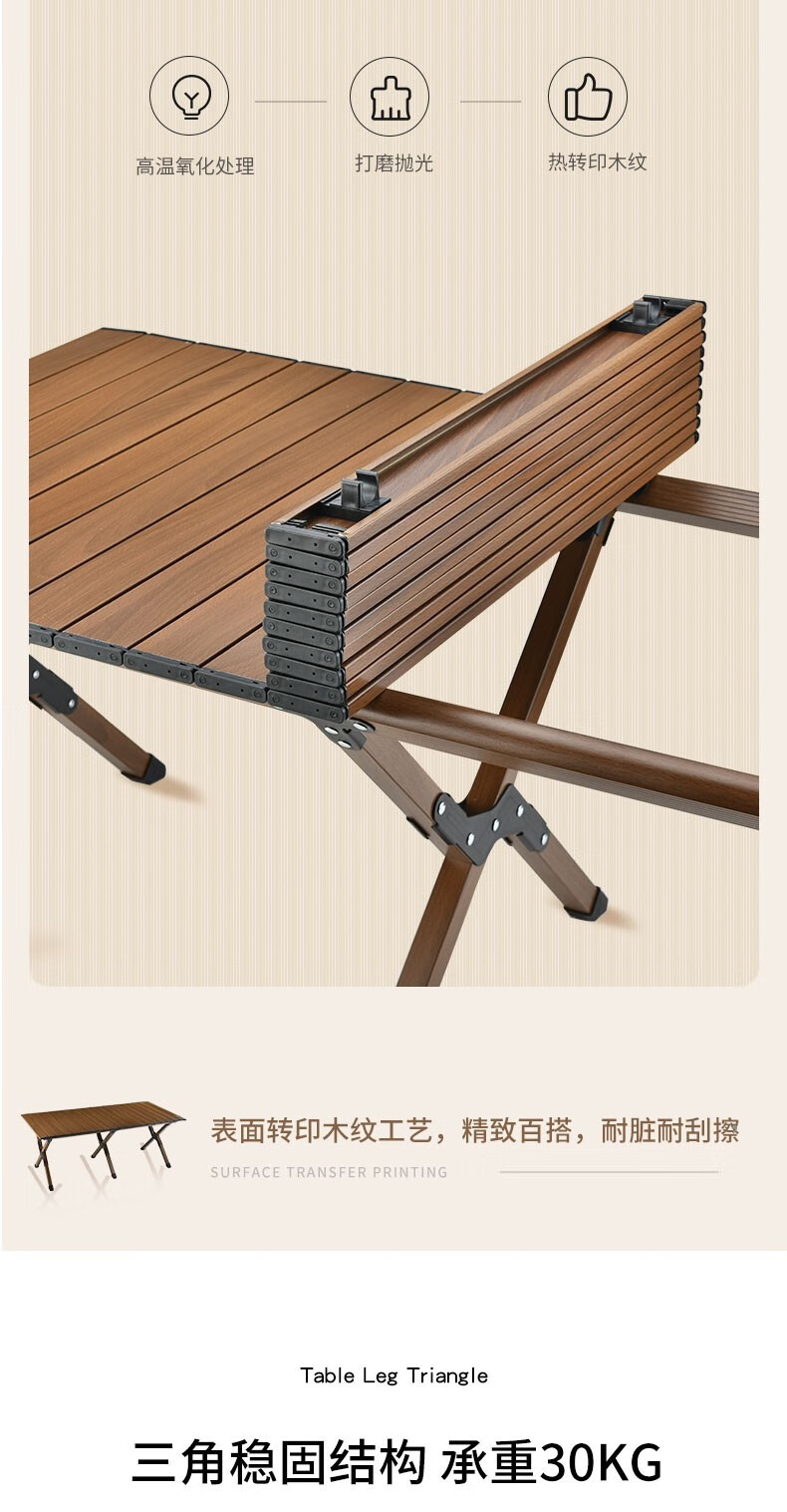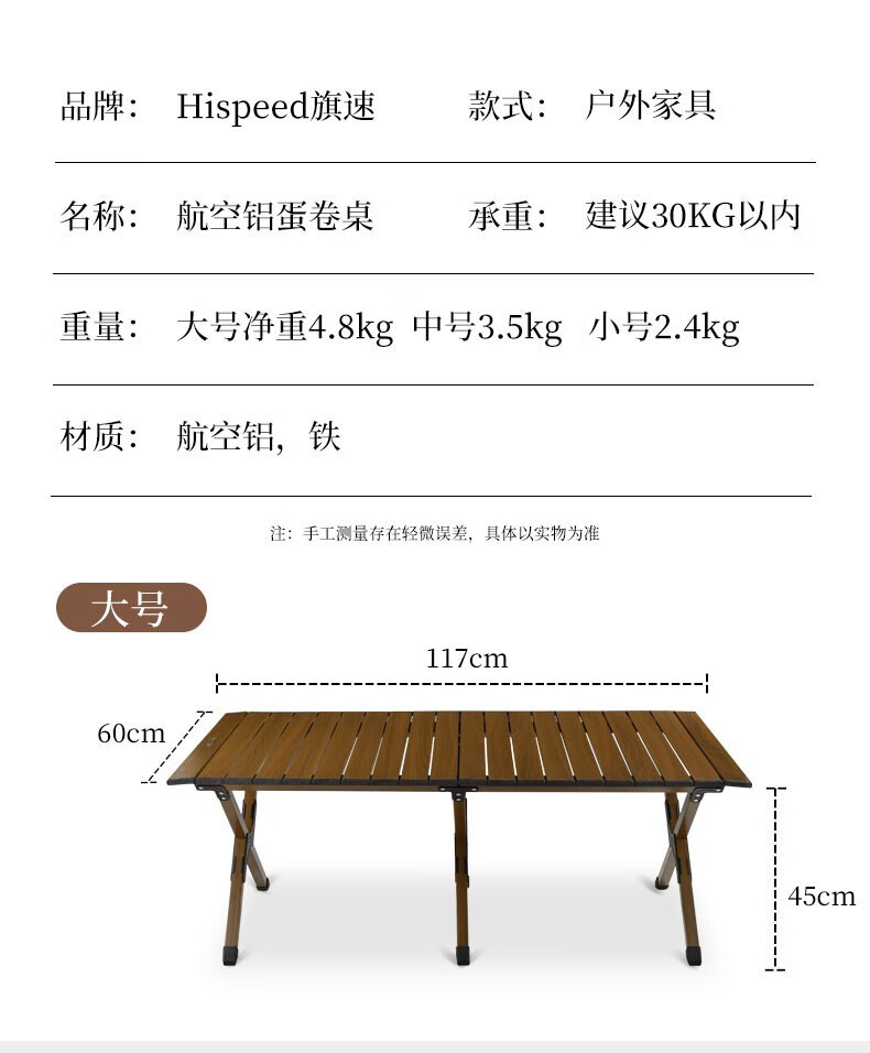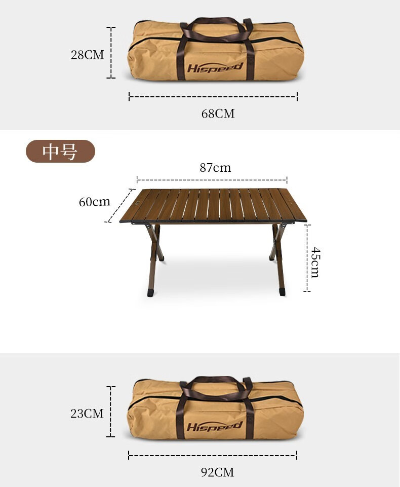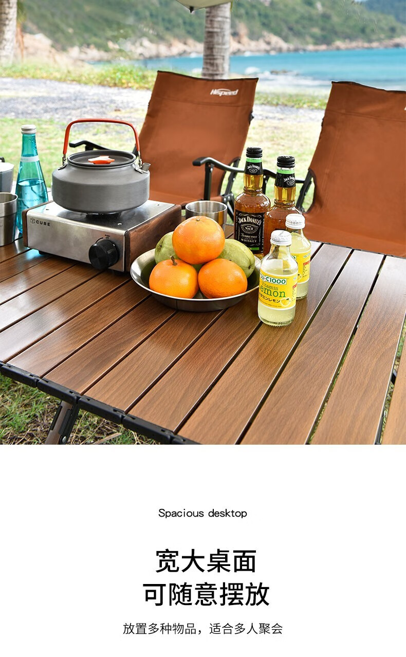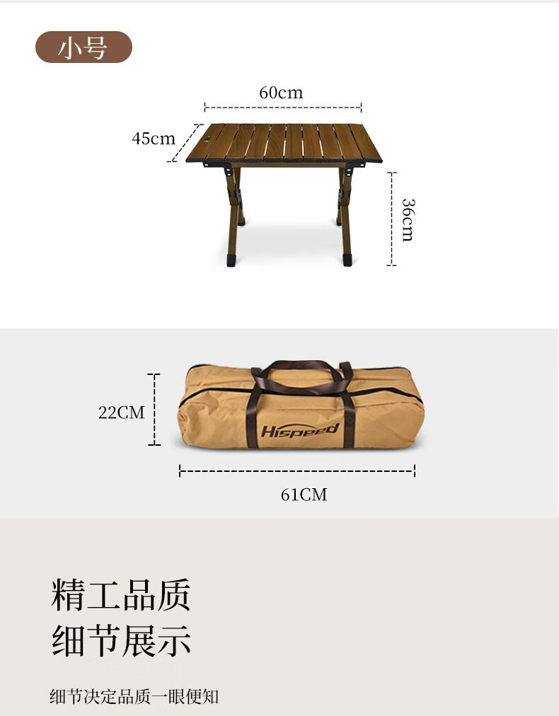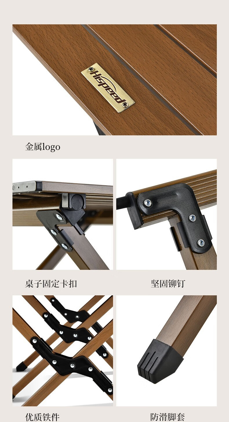 HISPEED旗速铝合金蛋卷桌露营桌子便携式户外折叠桌野餐桌椅装备 铝合金折叠桌【大号/胡桃木色】