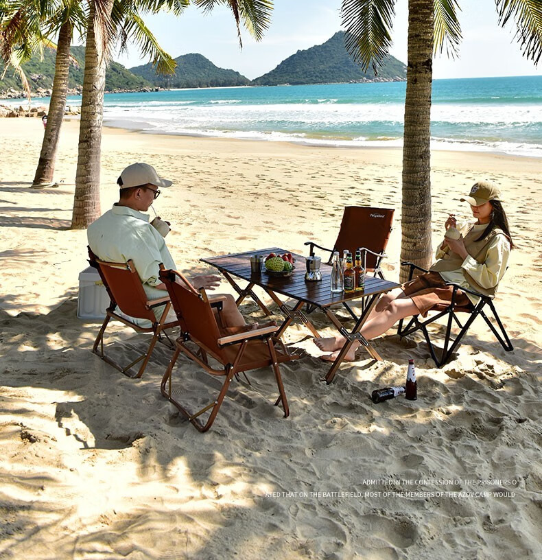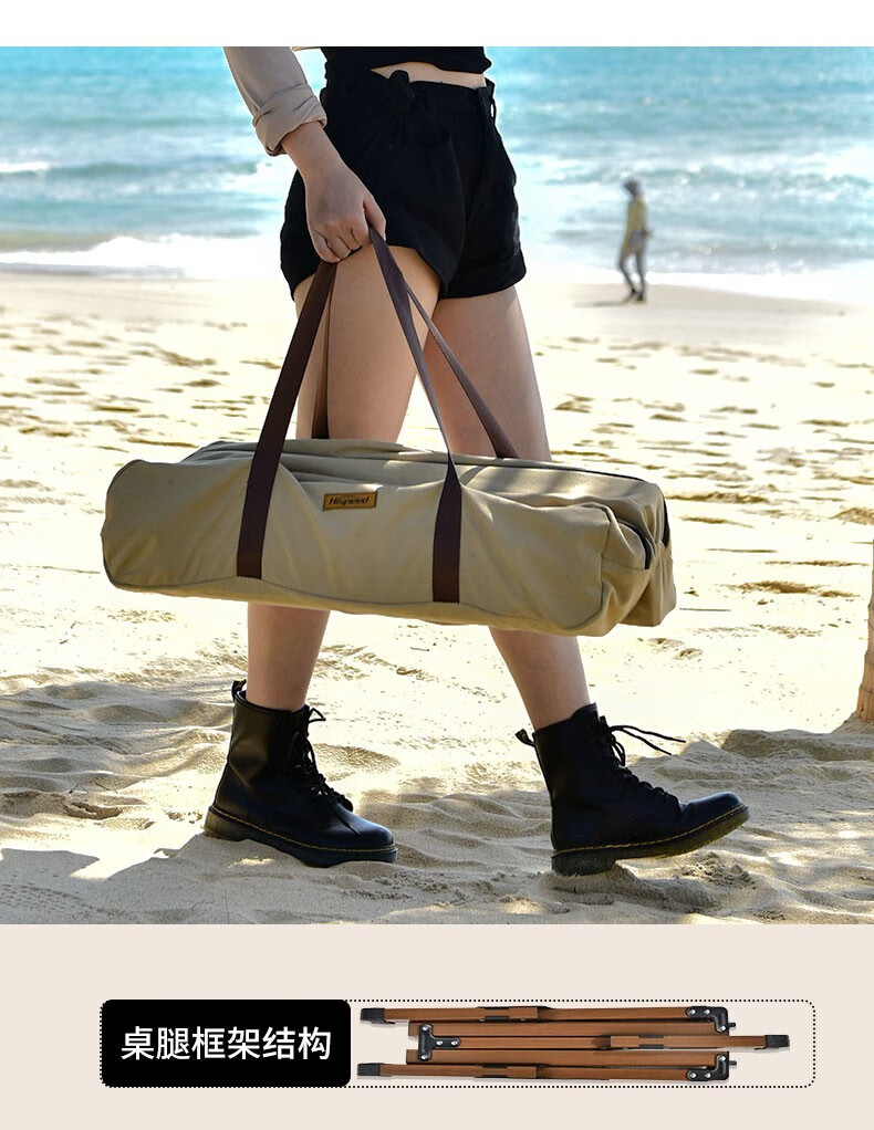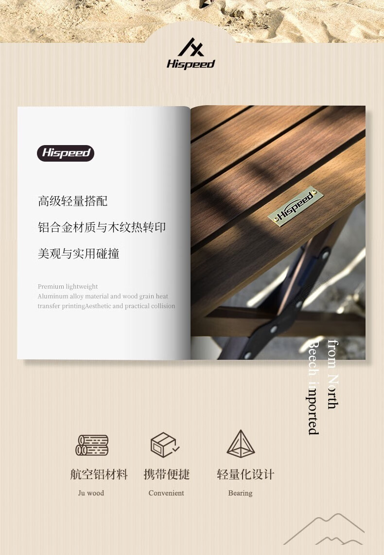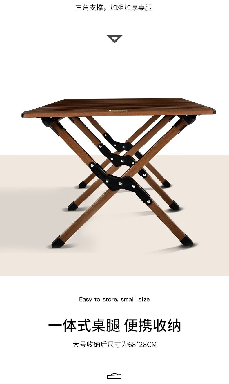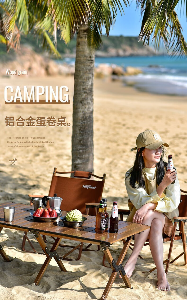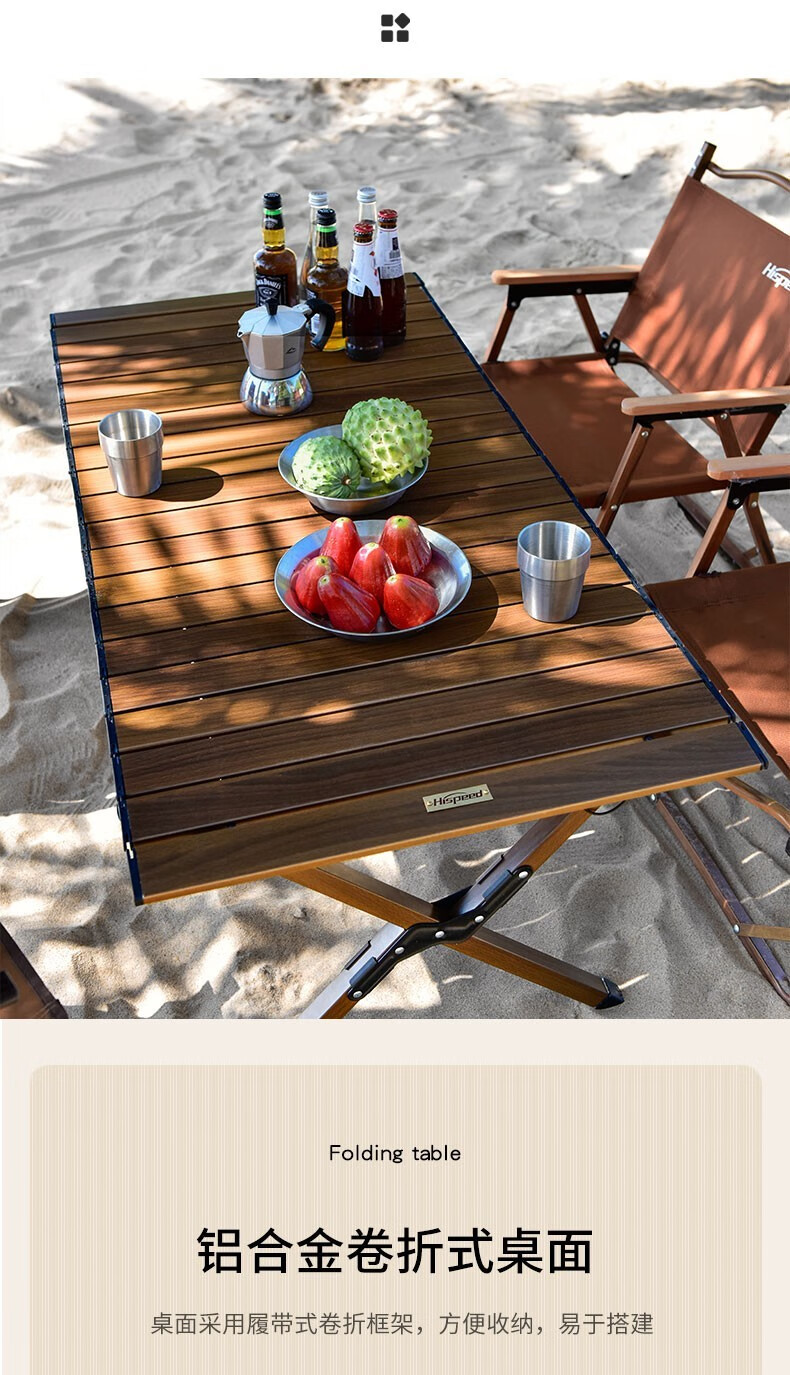 HISPEED旗速铝合金蛋卷桌露营桌子便携式户外折叠桌野餐桌椅装备 铝合金折叠桌【大号/胡桃木色】