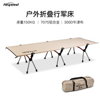 HISPEEDHispeed户外行军床单人露营超轻折叠床午休睡床铝合金便携款 米白色【高低两用款】