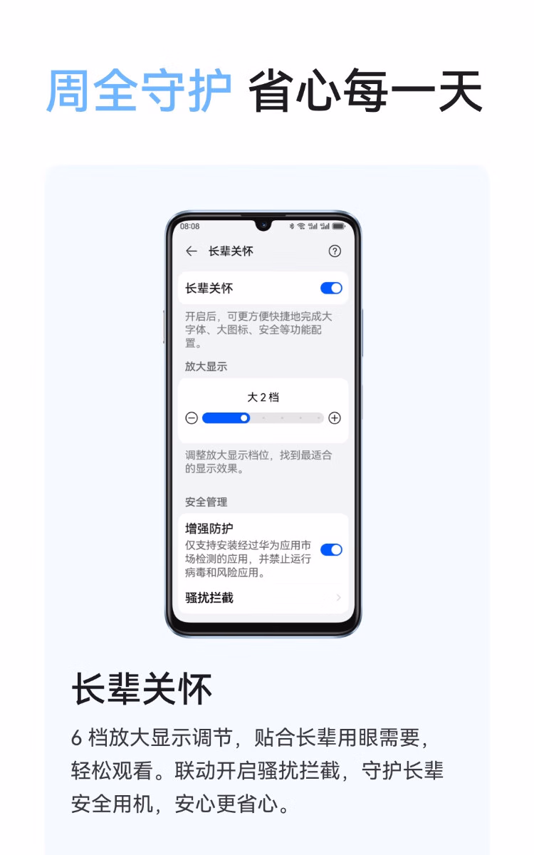 华为 畅享 70S 6.75英寸AOD护眼大屏 6000mAh大电池长续航 畅享X键 鸿蒙系统 老人 学生 智能 4G手机 冰晶蓝 8GB+256GB