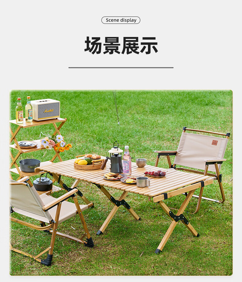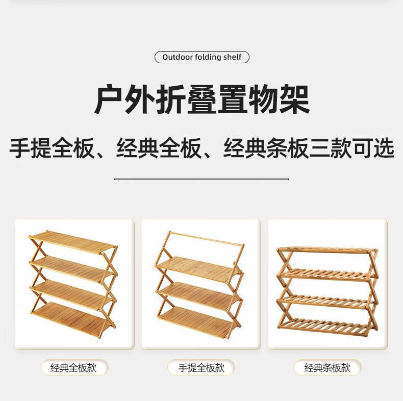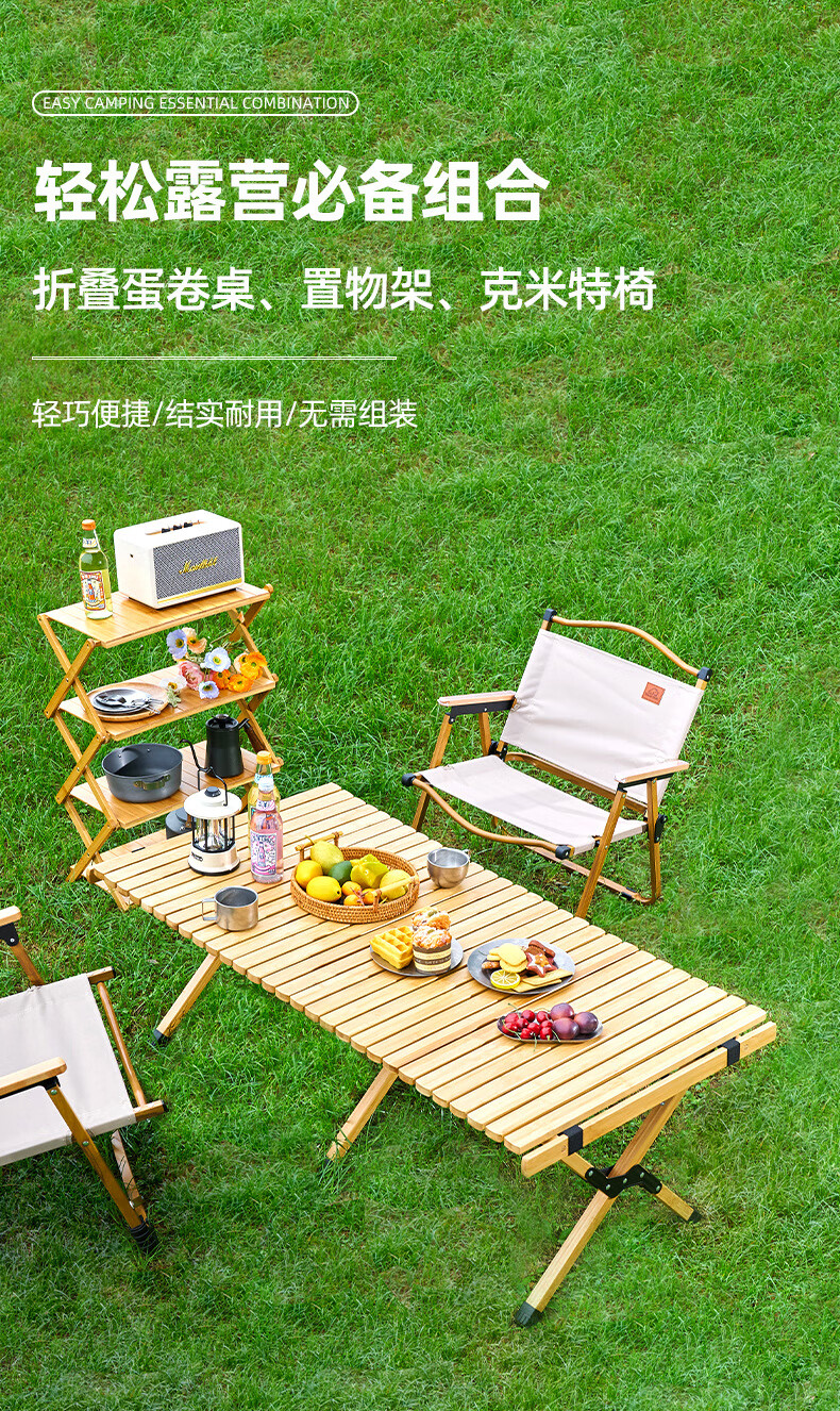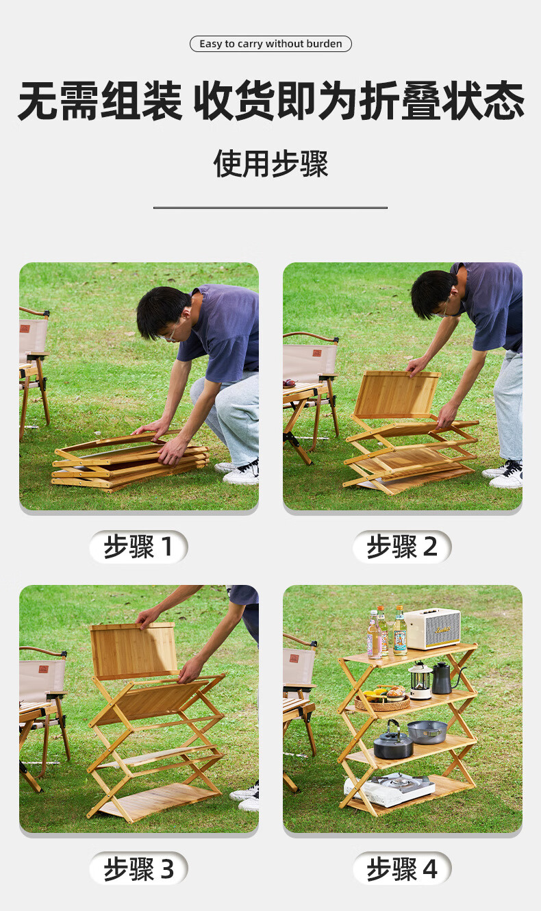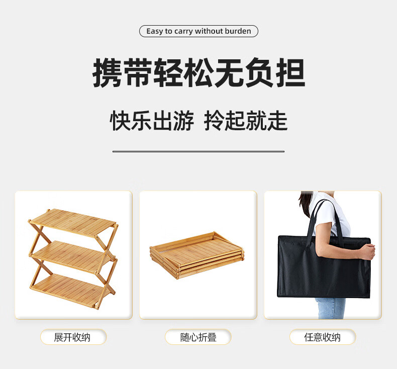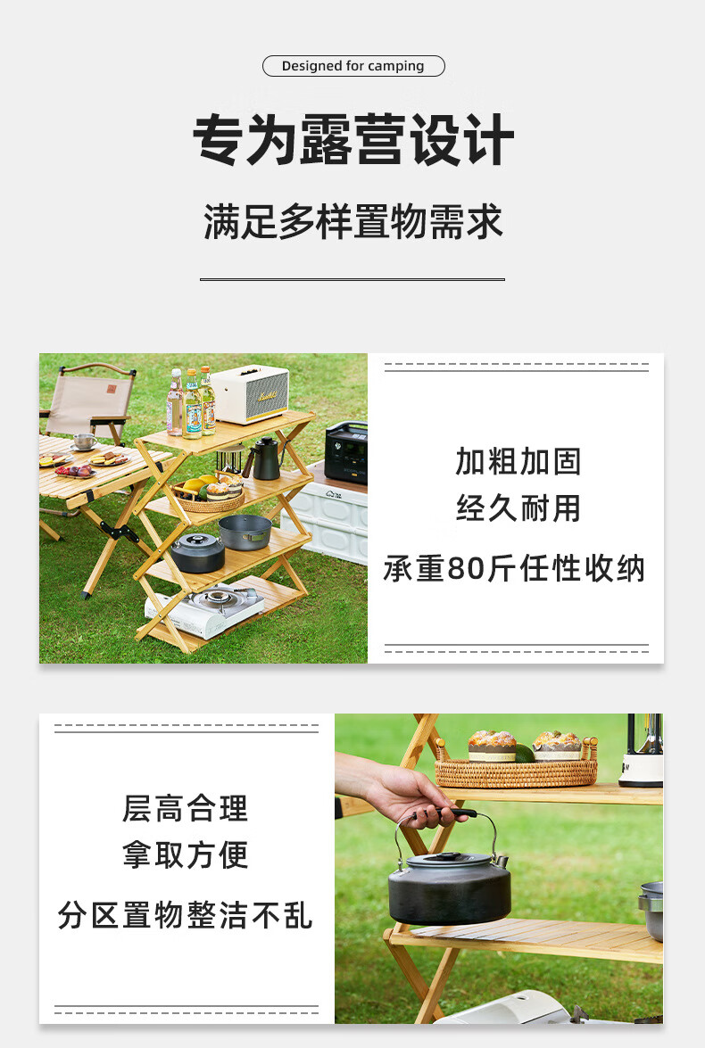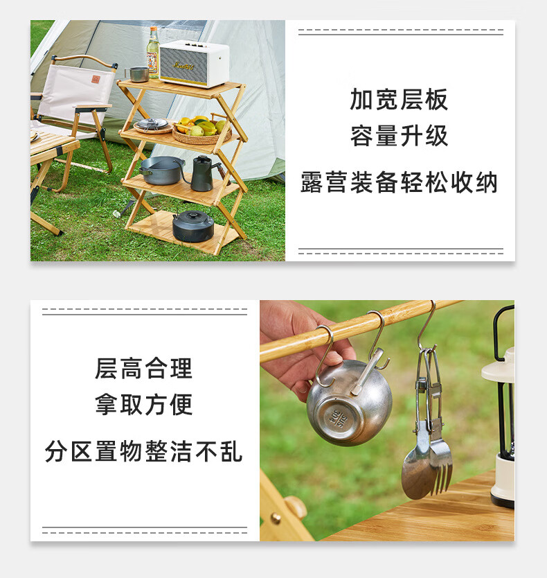 糜岚(MieLanat)户外野餐折叠置物架 便携式免安装收纳架多功能露营烧烤食 68cm长-四层