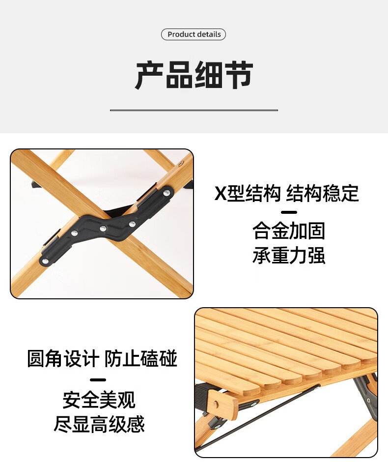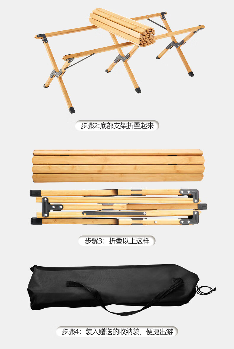 荣汇达折叠置物架户外野餐便携式免安装收纳架多功能露营烧烤食物架子 68cm长-四层