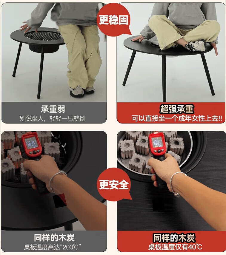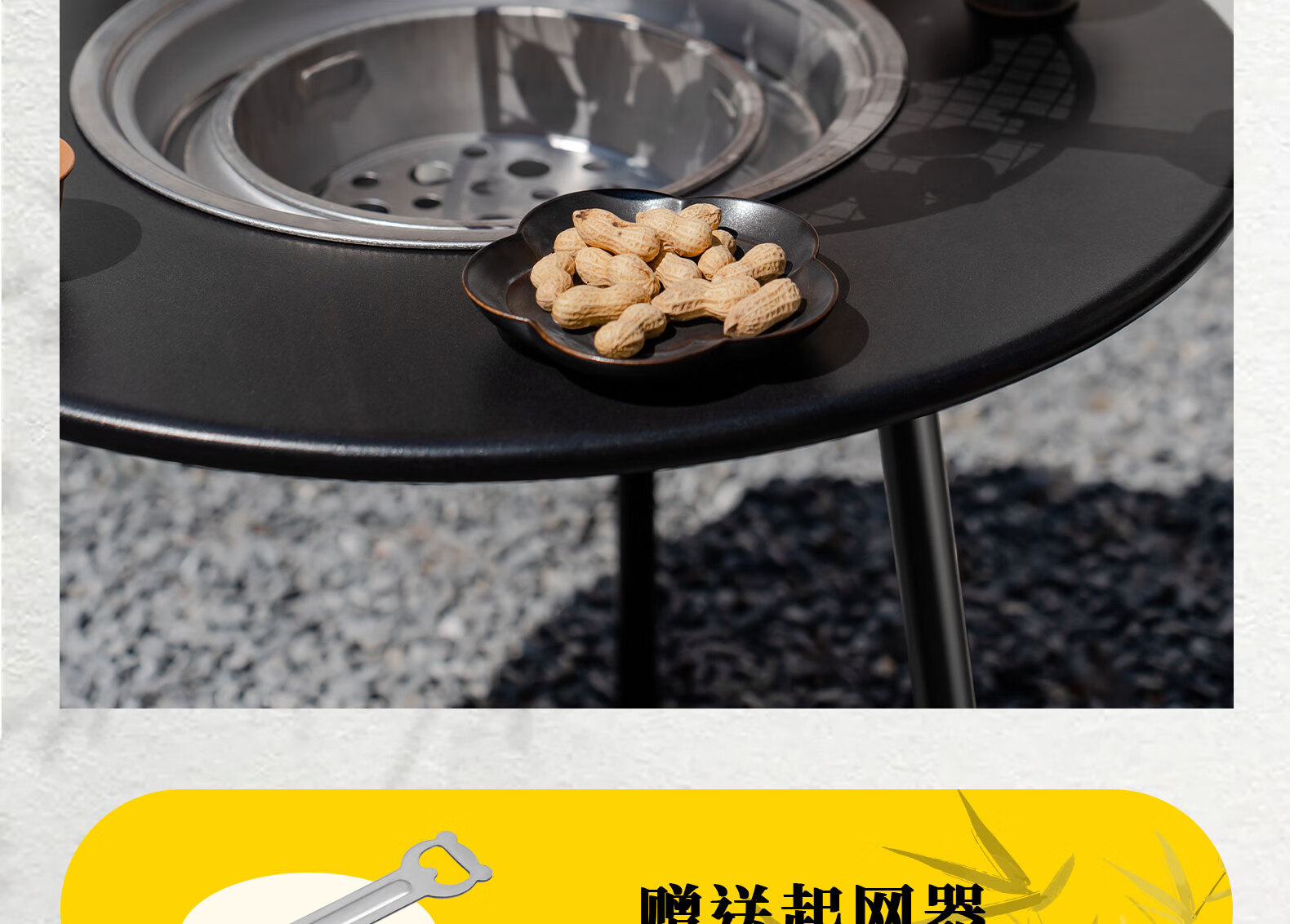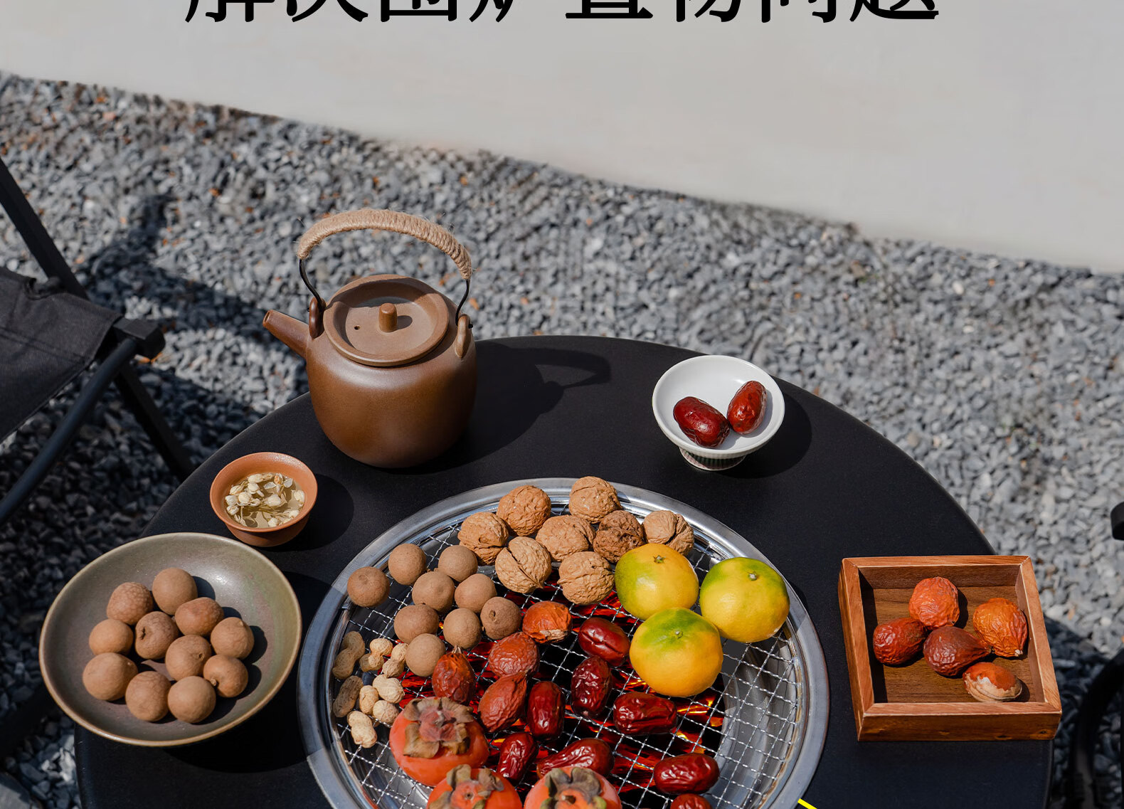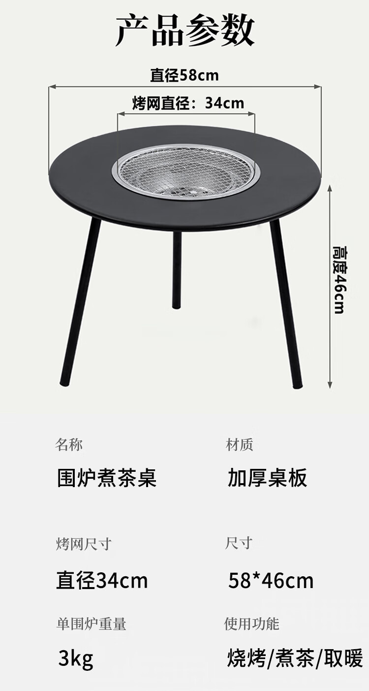 可以做烧烤 烤肉 最喜欢的是围炉煮茶 三五好友坐在一起喝喝茶聊聊天,又暖和又惬意 外观材质:专门选的这种钢铁一样的材质,感觉比较耐热耐用 商品品质:整体来说都很喜欢,可以拆卸收纳,出去玩带着就很方便,颜值也很高,朋友看了也喜欢要了链接