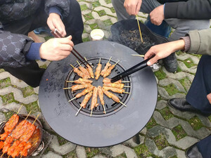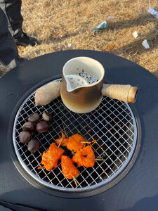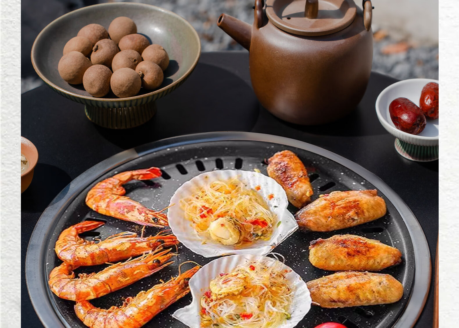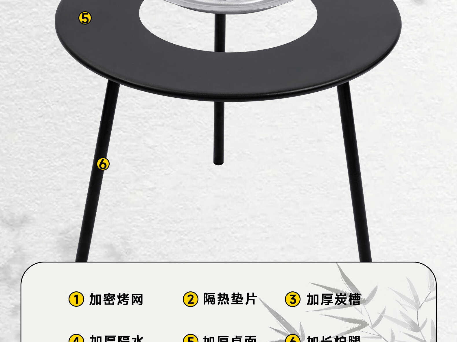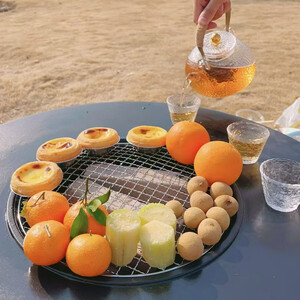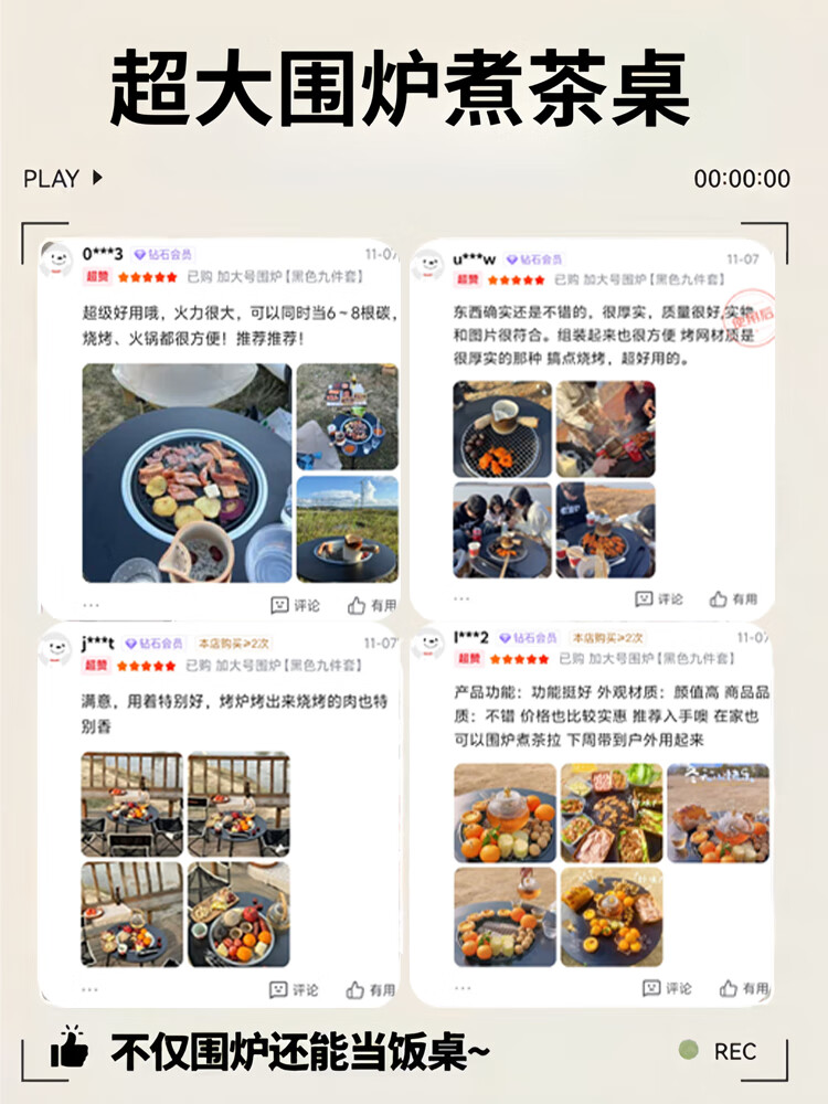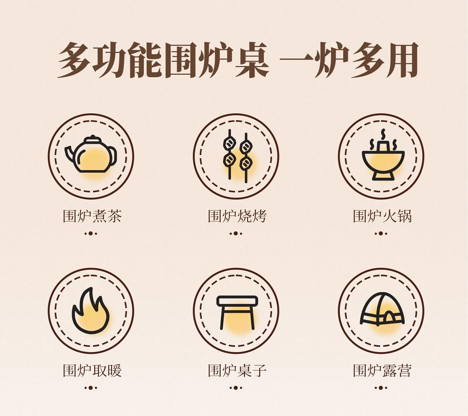 可以做烧烤 烤肉 最喜欢的是围炉煮茶 三五好友坐在一起喝喝茶聊聊天,又暖和又惬意 外观材质:专门选的这种钢铁一样的材质,感觉比较耐热耐用 商品品质:整体来说都很喜欢,可以拆卸收纳,出去玩带着就很方便,颜值也很高,朋友看了也喜欢要了链接