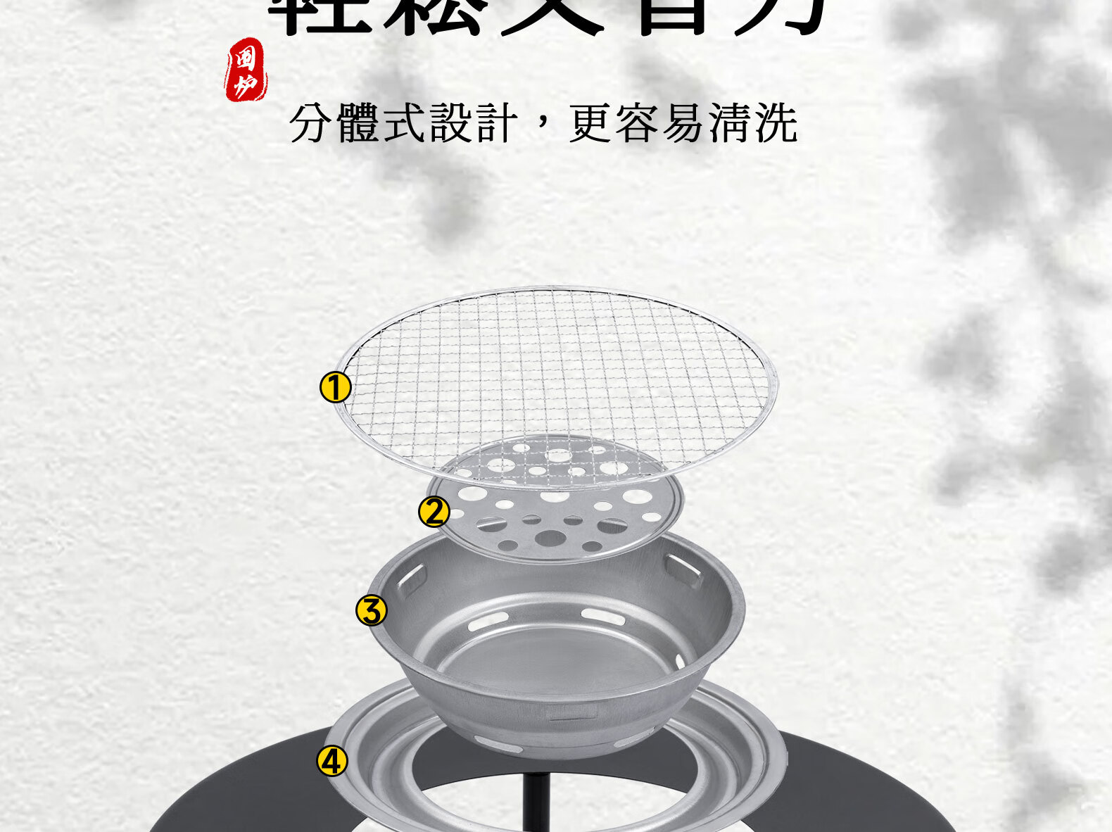 抽屉式圆形炉体铸铁炭炉冬天围炉煮茶取暖火锅烧烤铸铁炉圈嵌入用 炉面直径36厘米可调火力双层炉炉高21