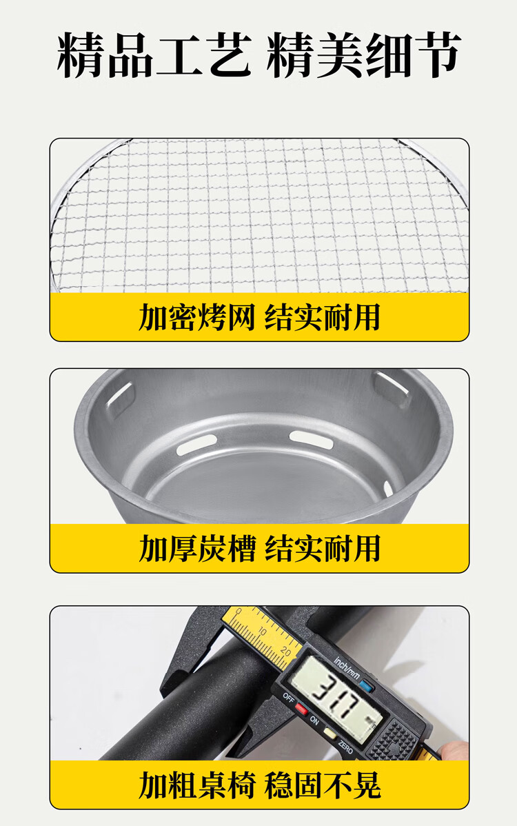 东西确实还是不错的,很厚实,质量很好,实物和图片很符合。组装起来也很方便 烤网材质是很厚实的那种 搞点烧烤,超好用的。