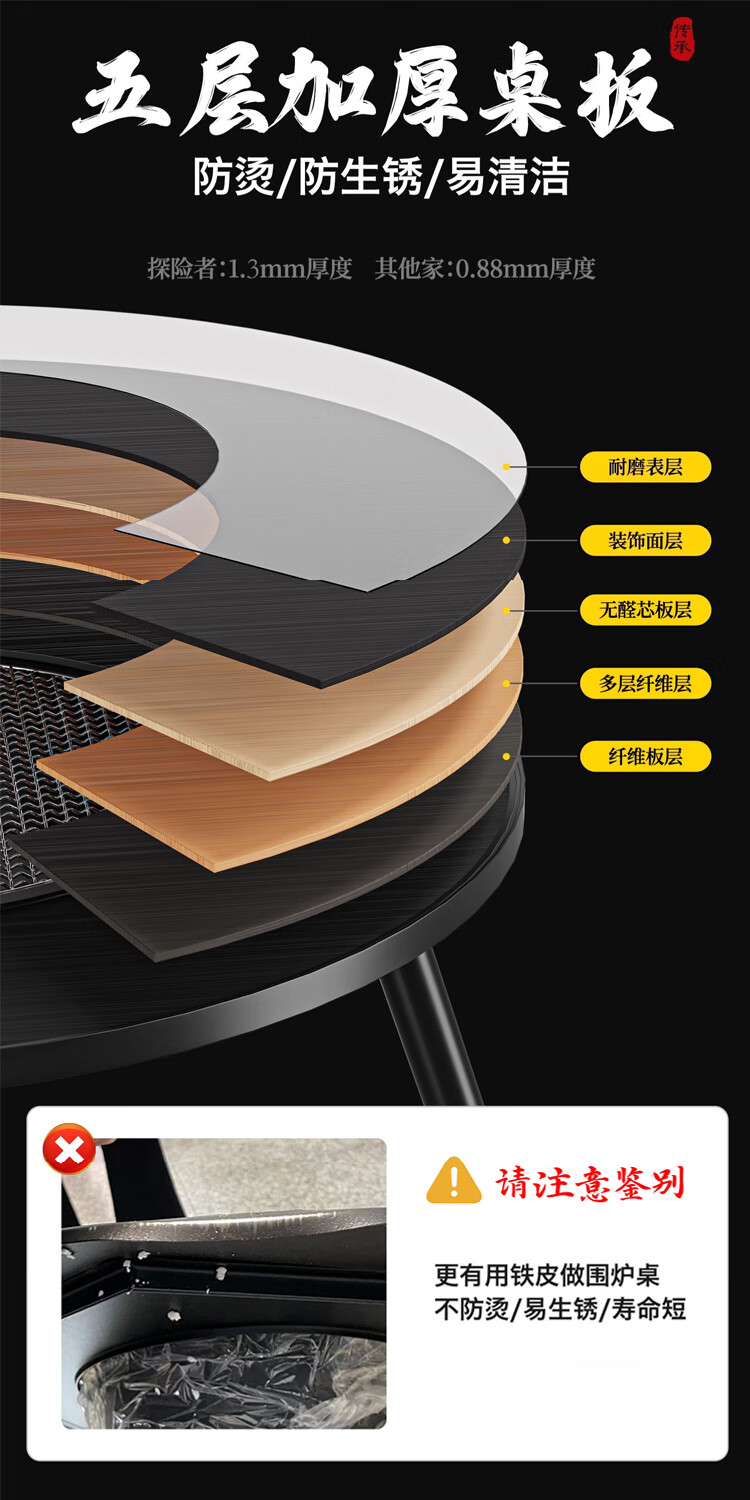 探险者探险者围炉煮茶套装电碳两用围炉桌烧烤煮茶一体烤火炉家用围聚煮 [60cm]电碳两用围炉桌