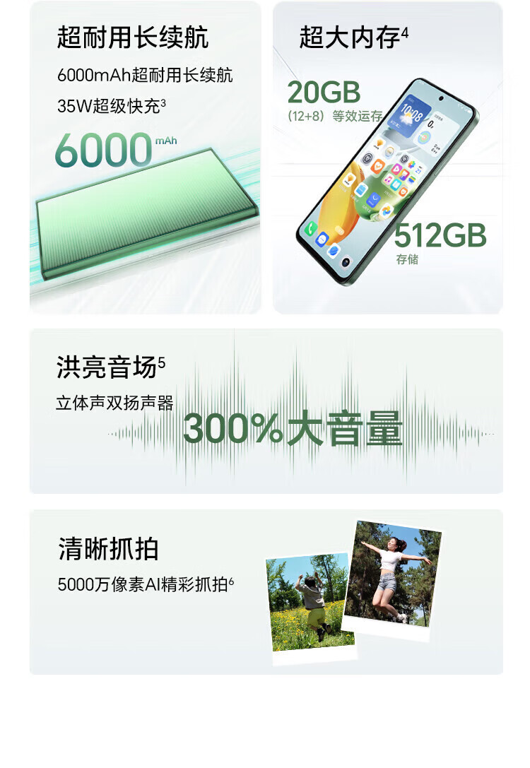 荣耀现货速发 畅玩60m手机AI一键直达6000mAh长续航超能大电池大字体老年学生备用高清相机 幻夜黑 12GB+256GB