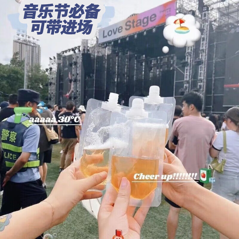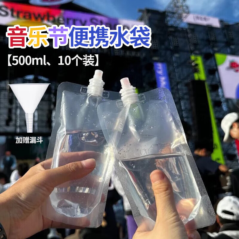 软装水袋音乐节一次性水袋演唱会水袋户外露营野餐便携储水袋 【加厚型容量500ml】*5个 【可装啤酒款】送漏斗