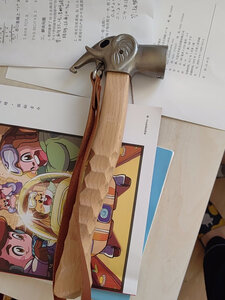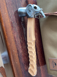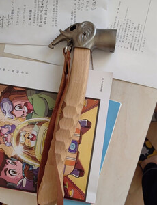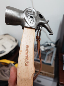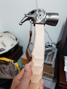 说实话,造型是不错,就是木柄跟前面金属部分交接的地方,木头窄了一点,跟普通的小锤子一般,这边没什么亮点,粗点就好了;另外木头又没有比贯穿金属部分,感觉贯穿后再固定,更结实一点。
