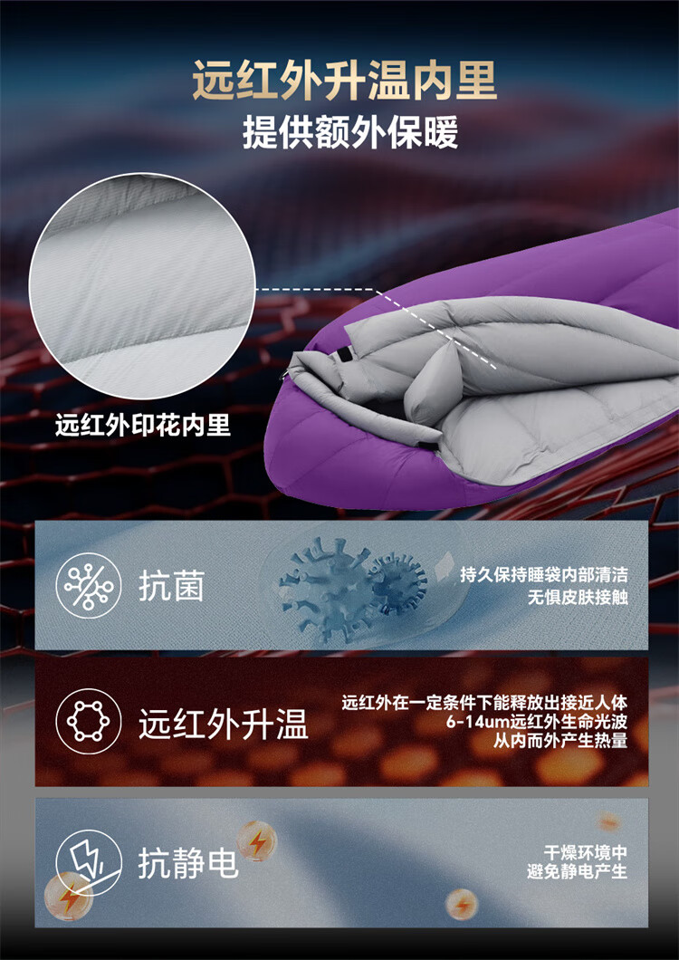 天石品质不用怀疑,睡袋打开很快就蓬松了,暂时没发现有钻绒的地方,收纳要暴力,不然装不进压缩袋里,对睡袋很满意,对这次购物经历很不满意,懒得说了。