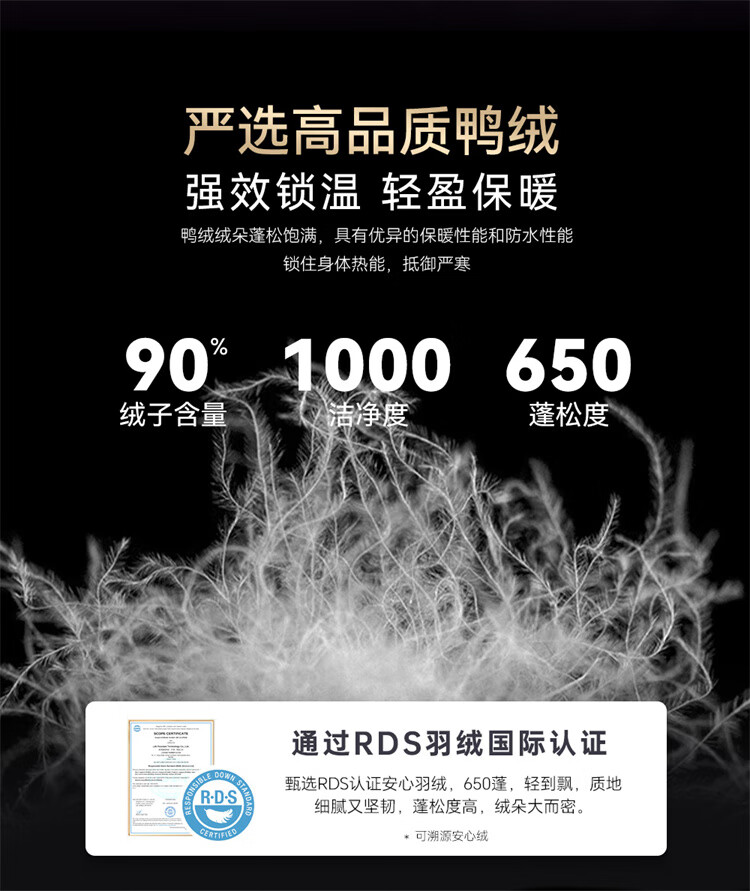 质量一级棒,做工精湛,鸭绒无气味,包装设计好,此外,还有防伪查询,确保正品!