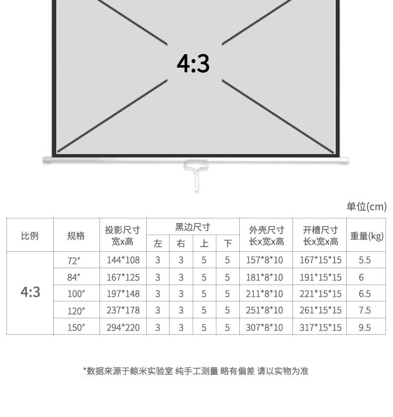银辉户外老电影幕布 投影软幕 免打孔可折叠水洗便携幕 简易幕散幕家用办公投影 60寸4:3(宽1.22米*高0.91米) 电影幕布