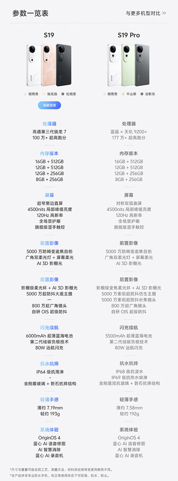 vivoS19 6000mAh超薄长续航 5000万防抖主摄 影棚级柔光环 百万跑分第三代骁龙7 拍照 AI 5G手机 烟雨青 16GB+512GB