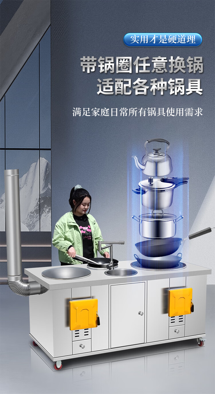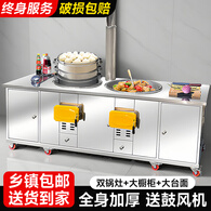 襄灶旺柴火灶家用烧木柴农村土灶大锅台不锈钢双锅双灶台可移动厨房户外 双灶50+46cm