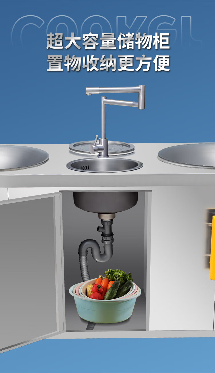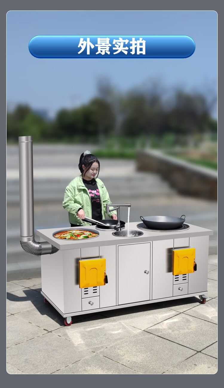 狄丽莫新式高级双锅带柜体柴火灶不锈钢移动锅灶农村家用大铁锅双柴火灶 双锅70cm+60cm+左右柜体 送鼓风机+厨房大礼包