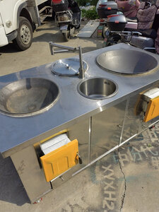 农村家用柴火灶烧木柴移动加厚户外室内304不锈钢双灶水池温水锅 左排烟60锅+46CM锅+下水池温水锅