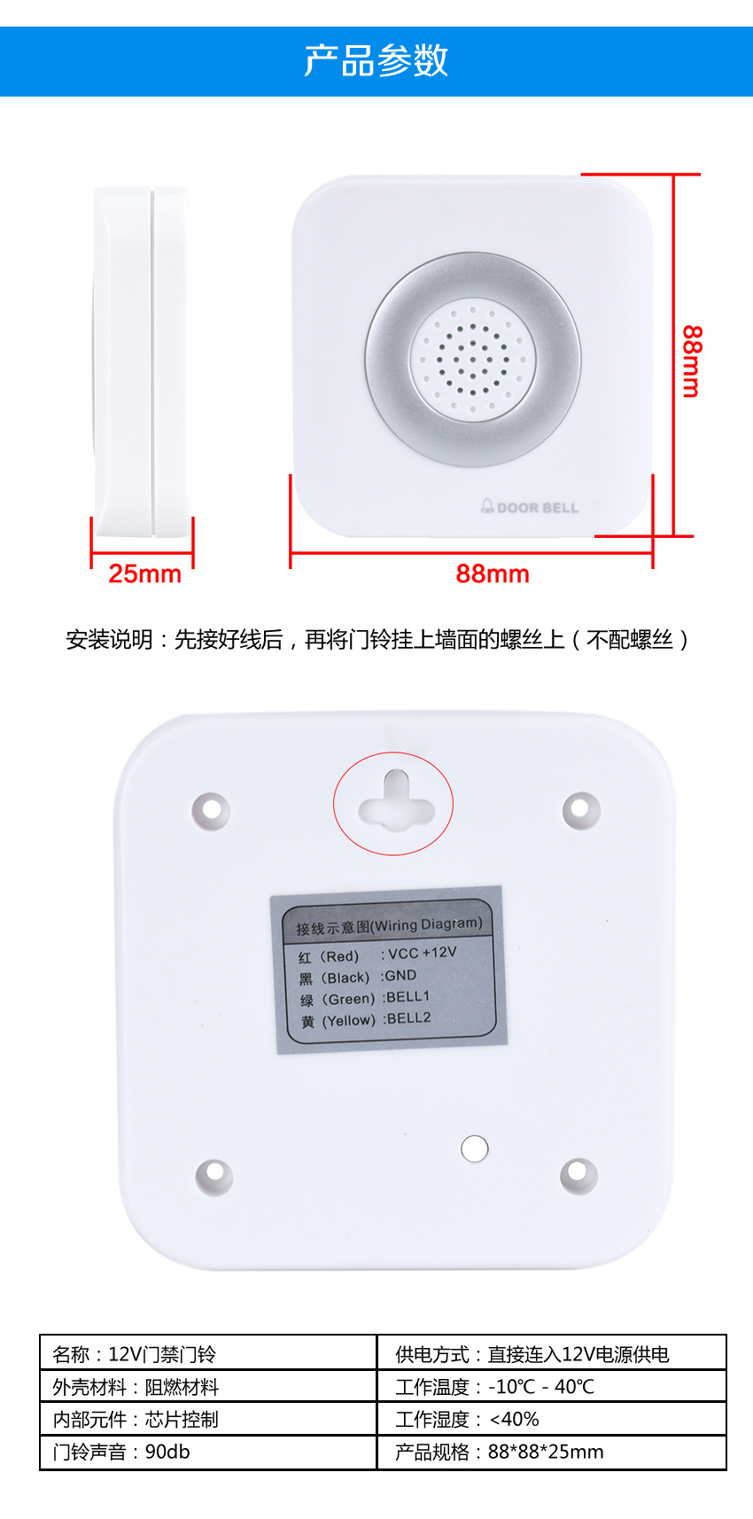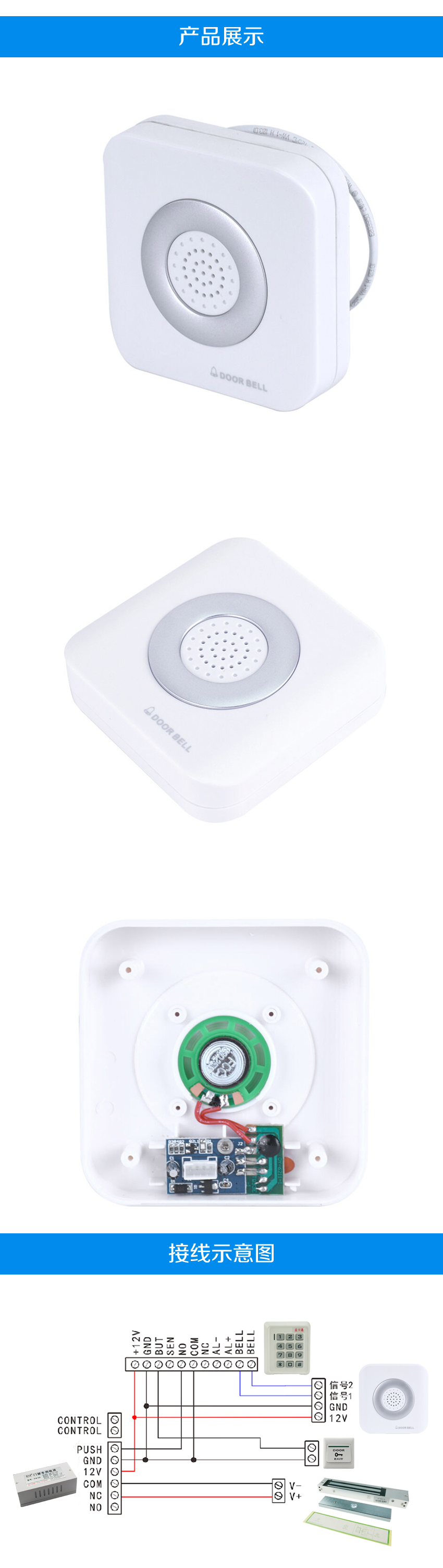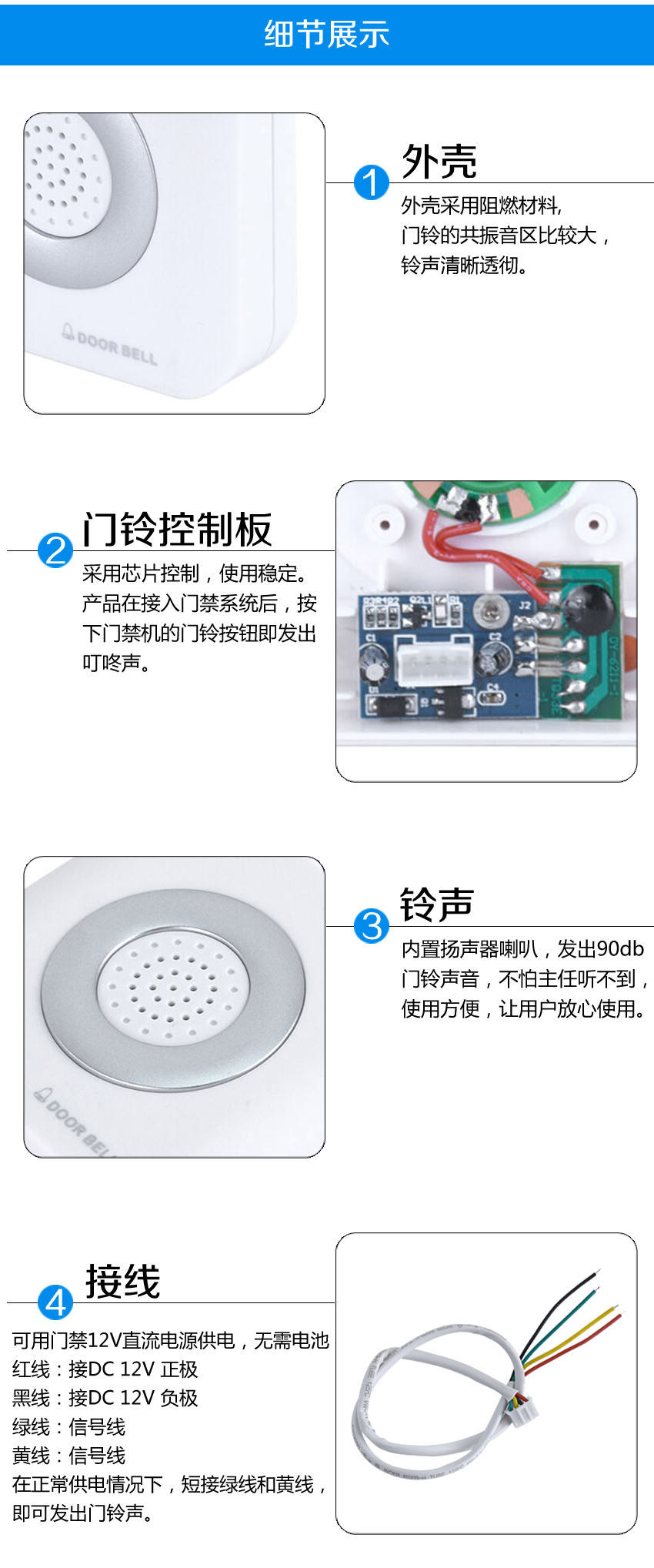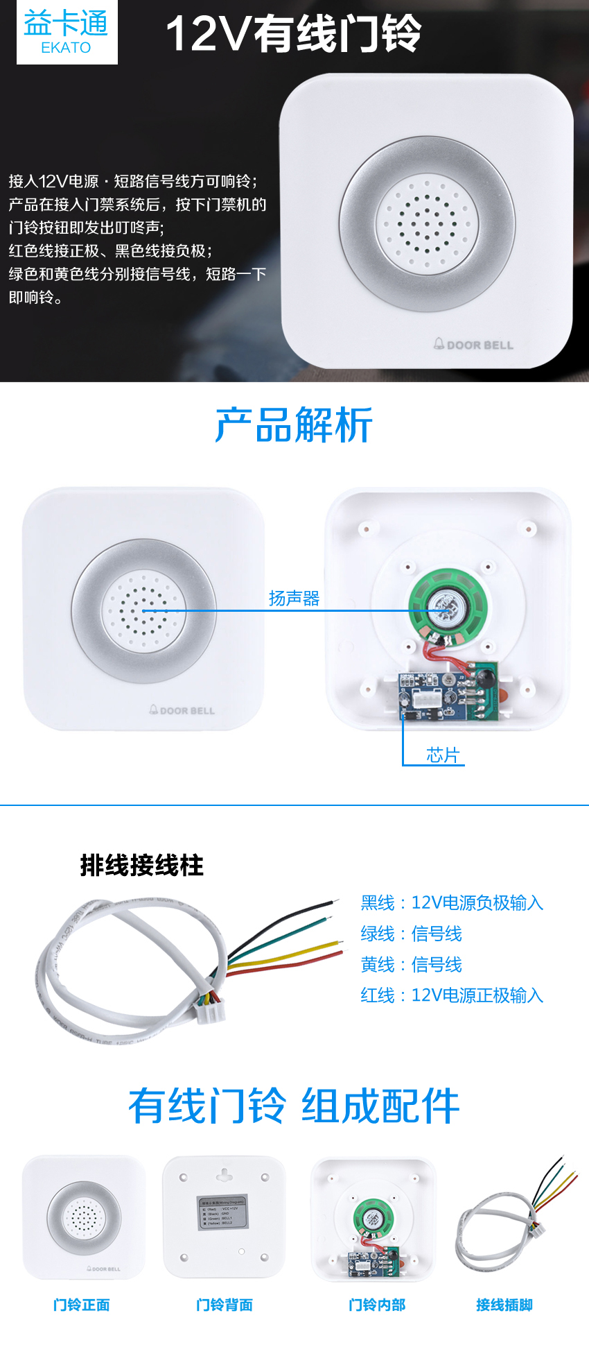 益卡通(EKATO)门禁有线门铃 门禁机配套门铃 门禁系统配套门铃 门铃型号 ML-B12(白色)