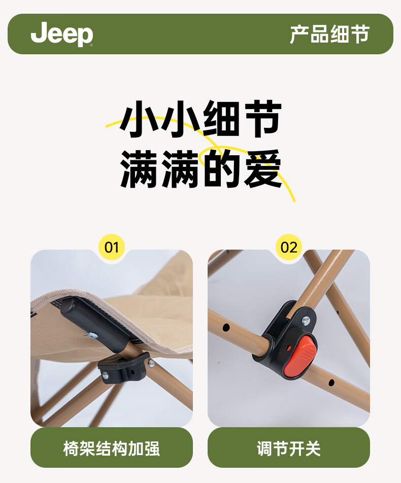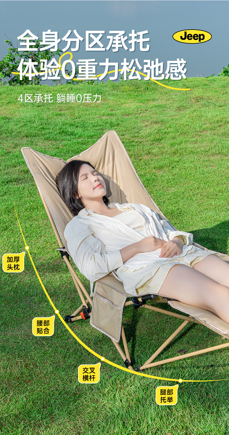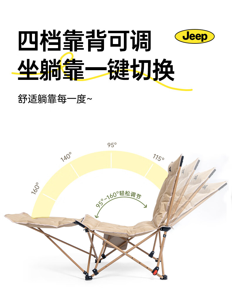 JEEP折叠椅户外露营便携靠背钓鱼椅懒人椅家庭休闲矮脚椅旅游旅行椅 二档躺椅冬竹青