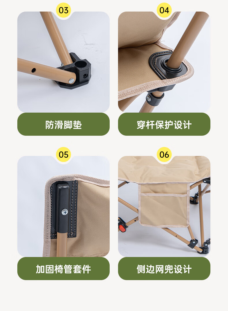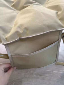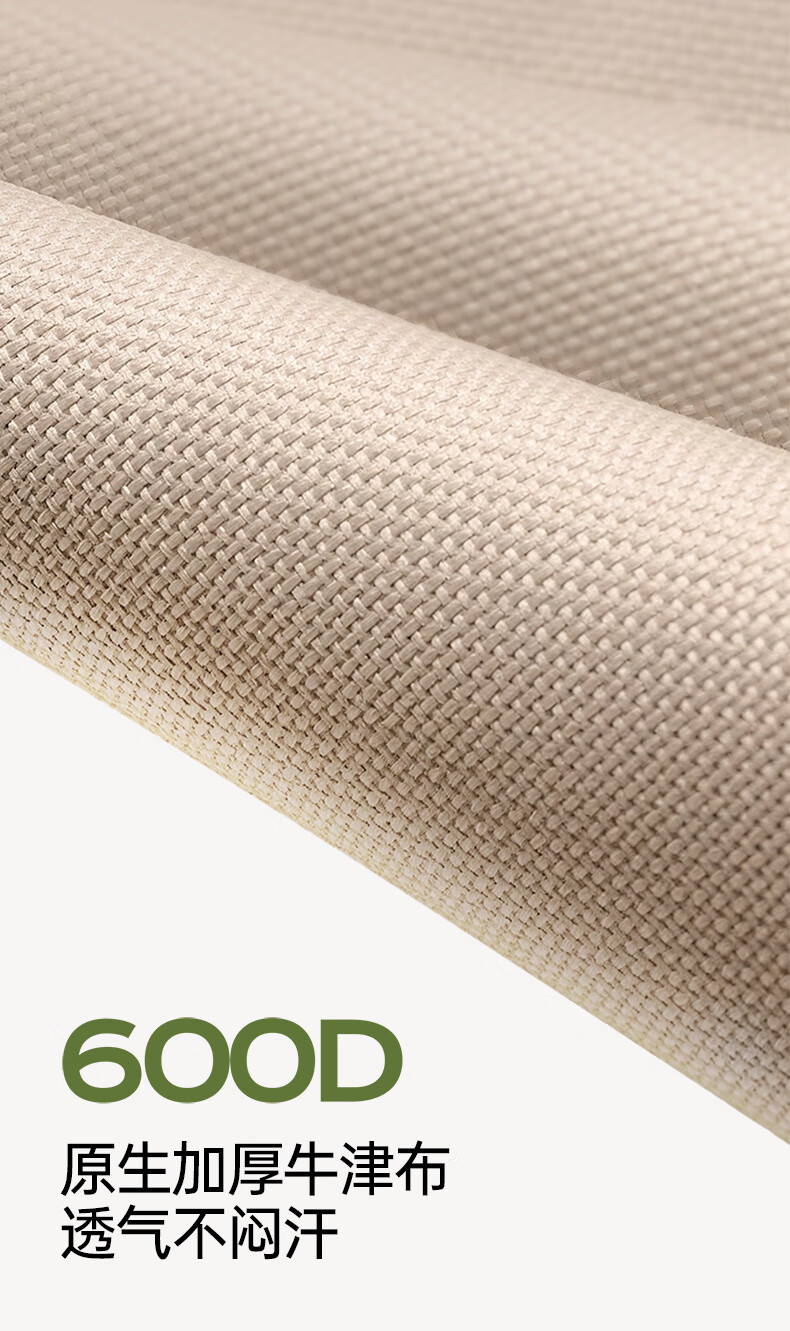 椅子是牛津布质感很扎实,卡其色也很耐脏。脚托设计,躺平的时候腿部能完全舒展。侧边的小口袋还能放手机,喜欢