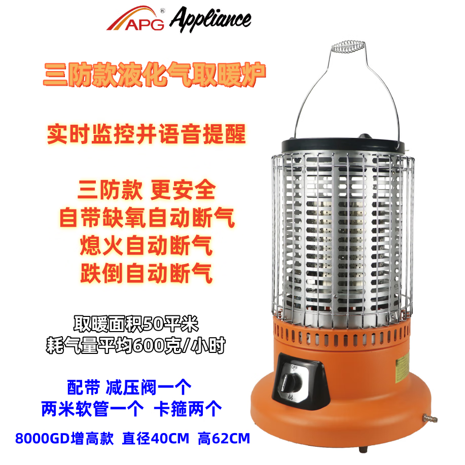 • APG阿帕奇三防取暖炉3000CD 4000 户外冰钓帐篷用液化气取暖做饭两用 3000CD语音三防液化气+管+阀