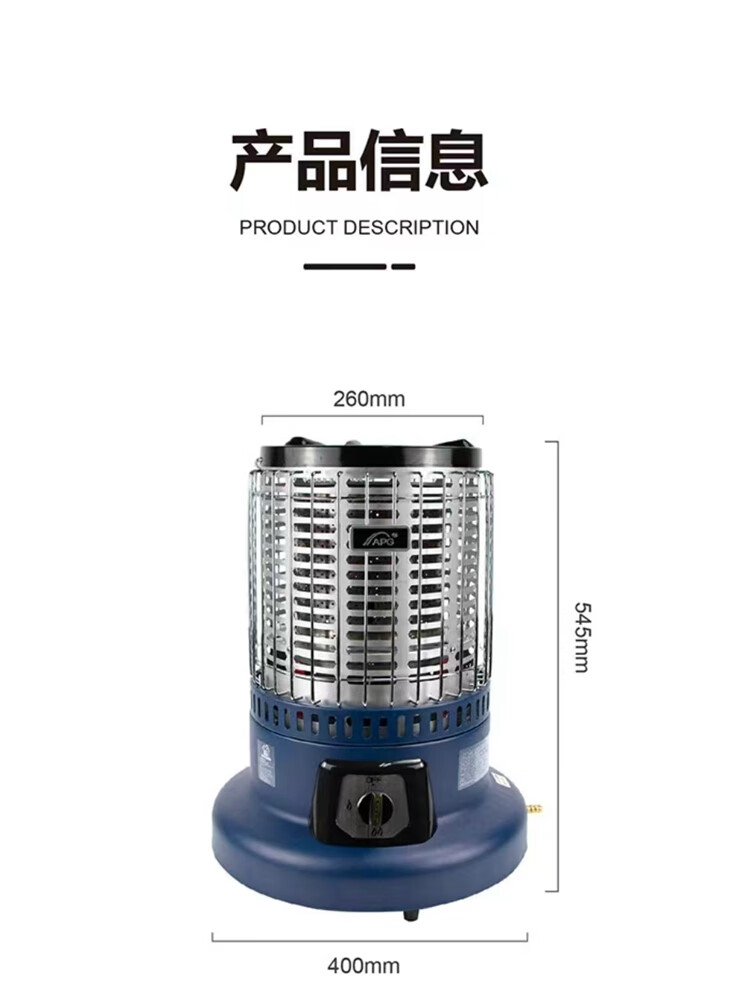出口版4000W取暖炉 零下二三十度时适合冰钓棉帐篷四五平米的空间取暖   温度越高使用面积越大 每小时耗气量300克左右 适合六七平米帐篷取暖