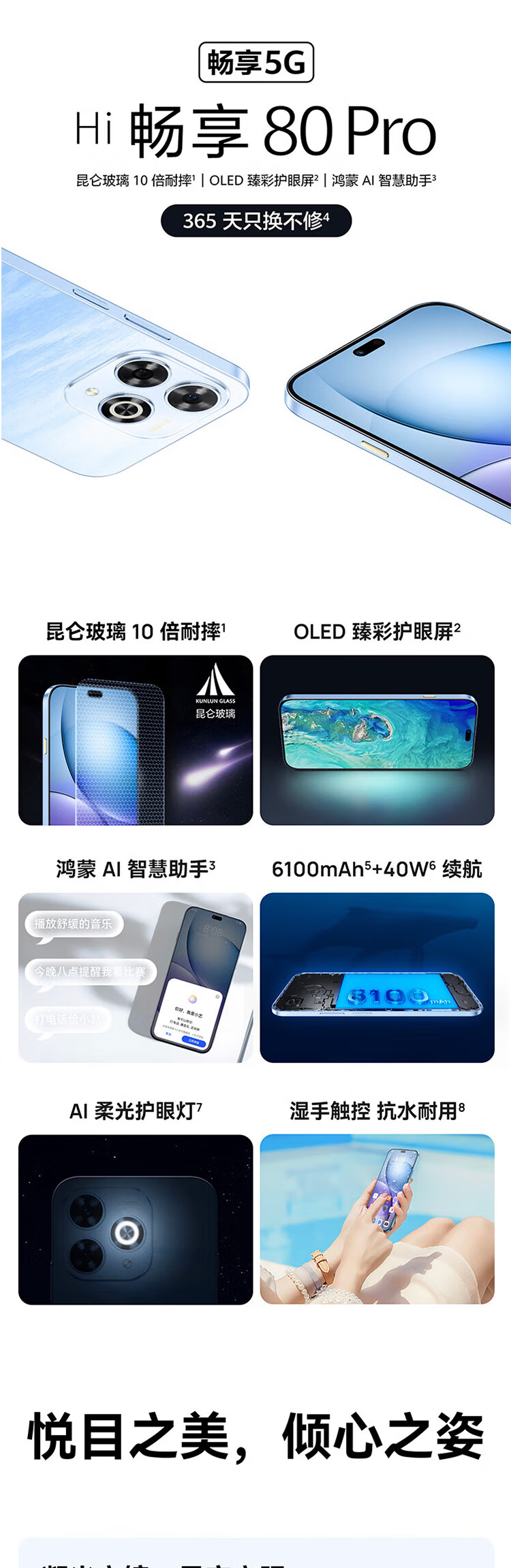 华为智选5G新品智选手机 80Pro 2025新机上市 十倍耐摔防水 护眼屏6100mAh巨鲸续航 华为pura补80 星海蓝 12G+512GB 24期白条免息+ 180天只换不修 + 碎屏险