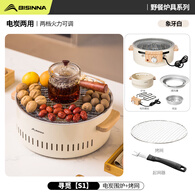 北山狼 户外围炉煮茶套装无烟电碳两用烧烤炉家用电烤炉 象牙白S1【烤网套装】