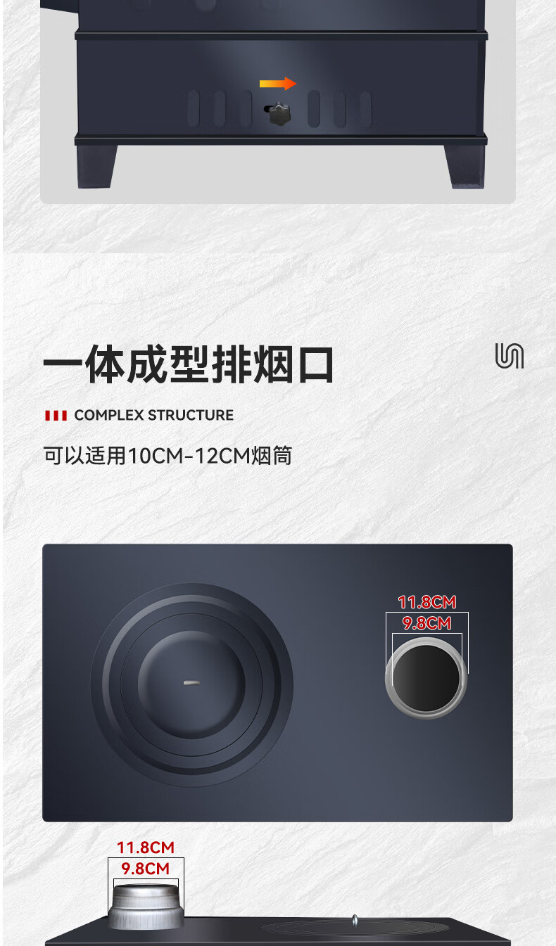 烽点柴火灶农村家用烧木柴无烟取暖炉子移动铸铁大锅台烤箱户外炉具 通炕大号泰钢+40锅+2米烟管配件