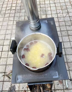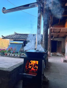 太实用了这个柴火灶,烤箱烤红薯也非常快,昨晚取回家,今天上午一家老小五个人直接围炉煮火锅,火力大、长短柴都好烧