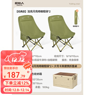 原始人(The Primitive)户外折叠椅月亮椅加高露营椅子钓鱼凳便携式躺椅午休沙滩椅野餐 经典款加高橄榄绿*2+55L卡其色收纳箱