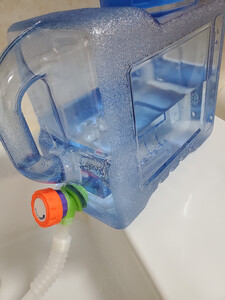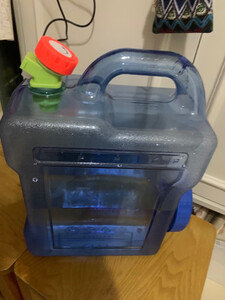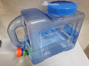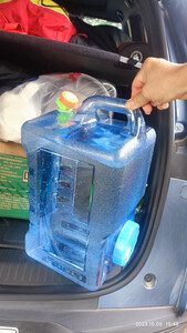 自驾游,这个容量的水箱正好合适,容易取水,重量正好能提起来。立起来也不会漏水,太好了!