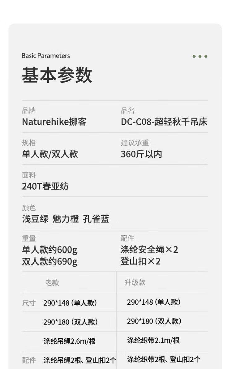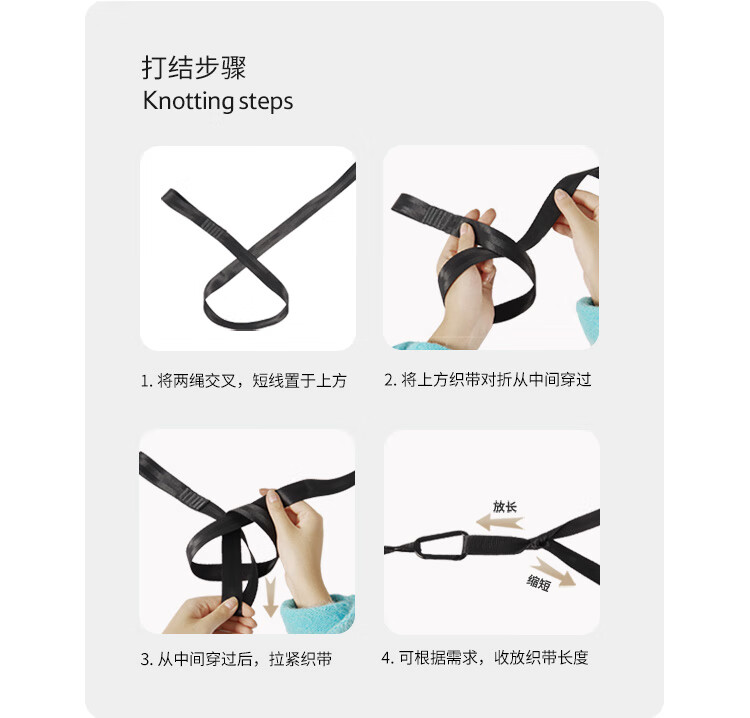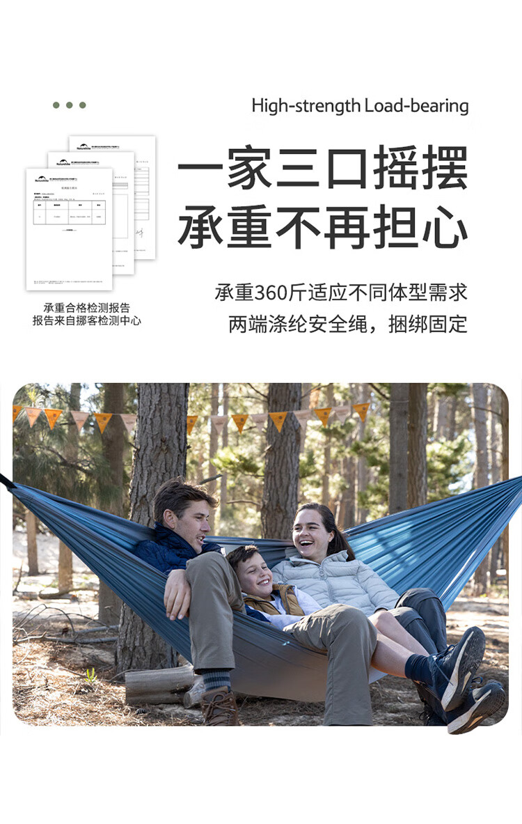 使用说明非常详细。 体积重量:很轻,一个手掌就能托住,收纳起来很方便 承重效果:目前看还不错,只要按照说明绑住,两个人是没问题的