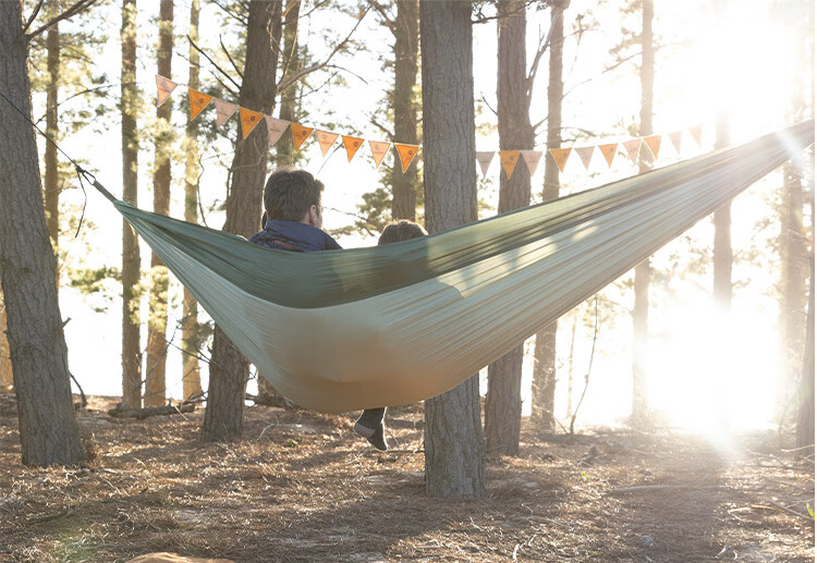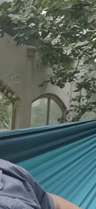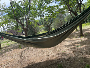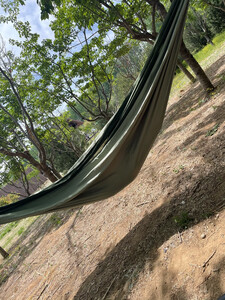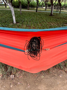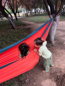 这个吊床没有横杆,比较轻便,容易携带,载重180公斤,可以同时睡两个人。有了这个吊床就经常露营了⛺️。尤其是小宝宝更喜欢走出家门到野外玩出了。