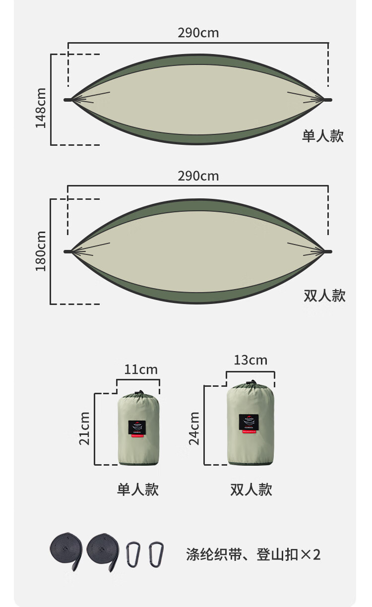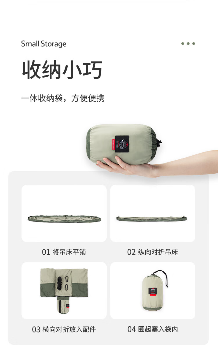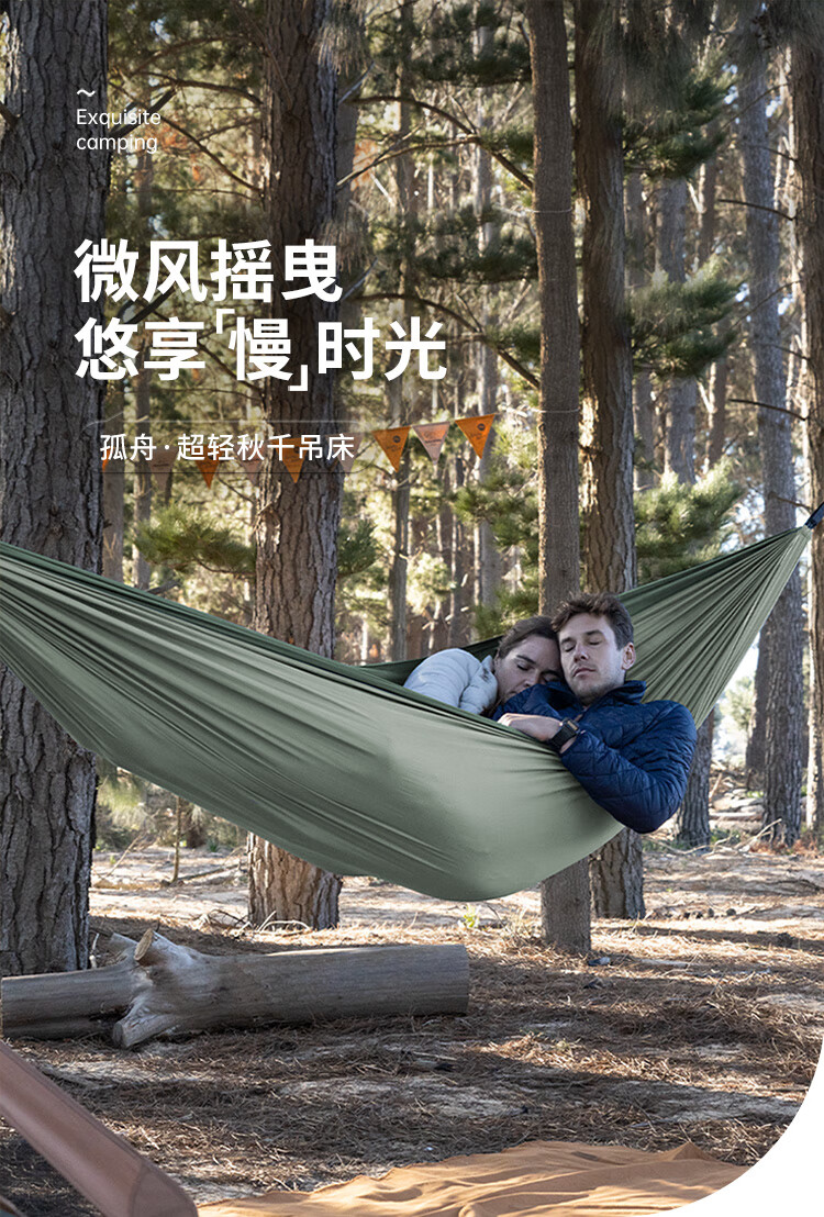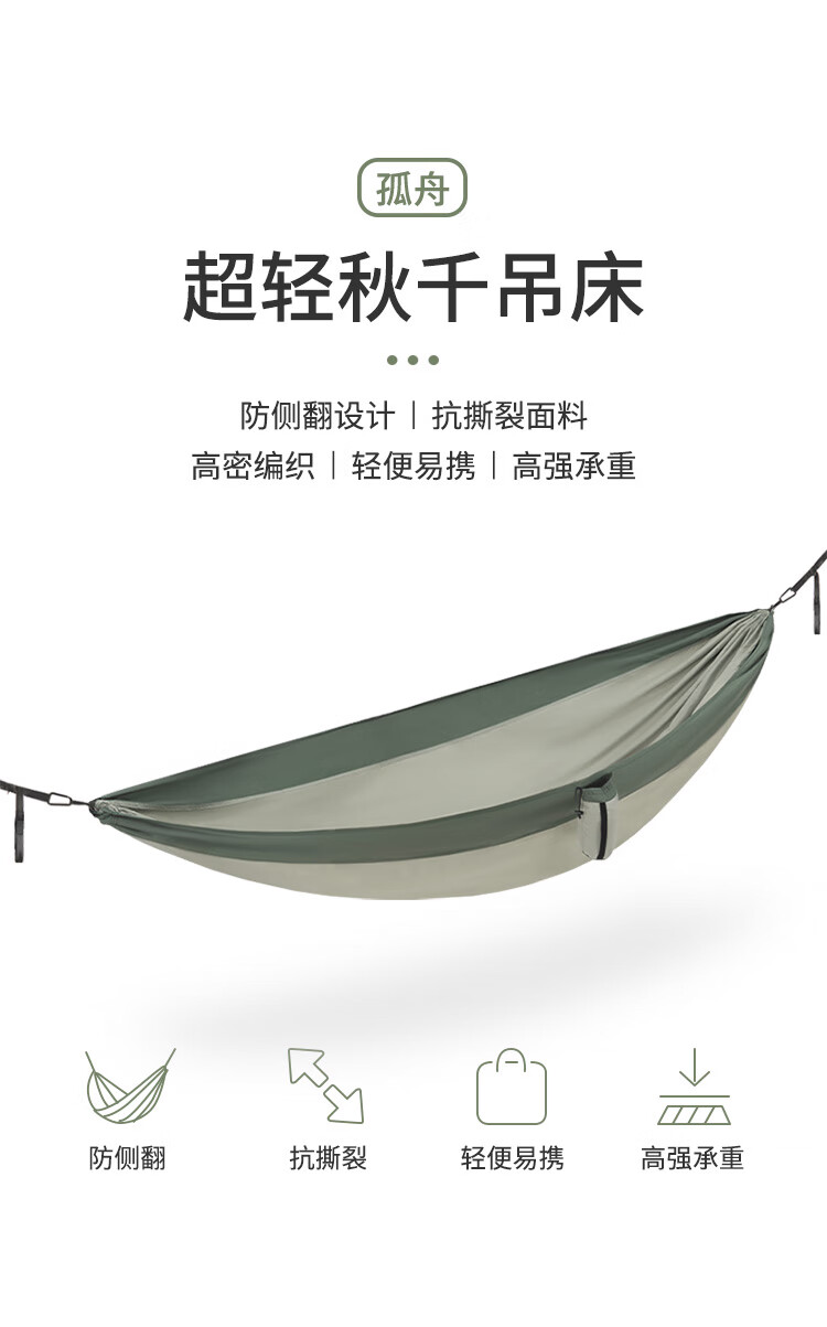 NatureHike挪客超轻吊床户外野外野营露营秋千 单双人防侧翻大学生宿舍吊床 单人-浅豆绿(织带款)