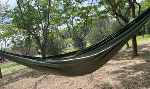 盛源 户外降落伞布吊床 轻便 野外露营休闲秋千有加粗绑绳 挂扣 双人 墨绿配果绿