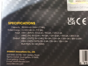 NB20000 GEN3充电宝x1,CtoA转换线x1