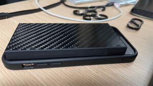 产品材质:碳纤维材质手感很好,手机壳也是这个材质yyds 产品重量:很轻,户外爬山强烈推荐的,到手果然惊艳 其他特色:很轻薄,尺寸也很小,果然是户外人都喜欢的充电宝,对得起这个价格。看对比图,手机是用备用手机苹果11pro对比的