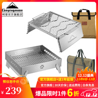 CAMPINGMOON柯曼不锈钢火床焚火台烧烤炉炭烤炉露营焚火台生火取暖炉 【MT-6-LT】+【MSW-1018】烤网架