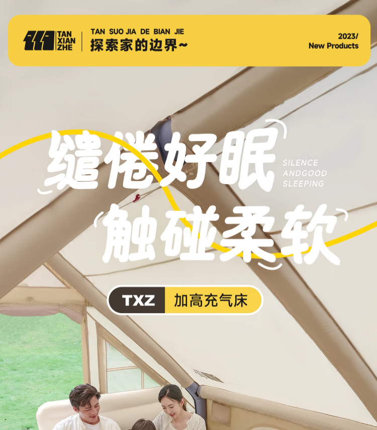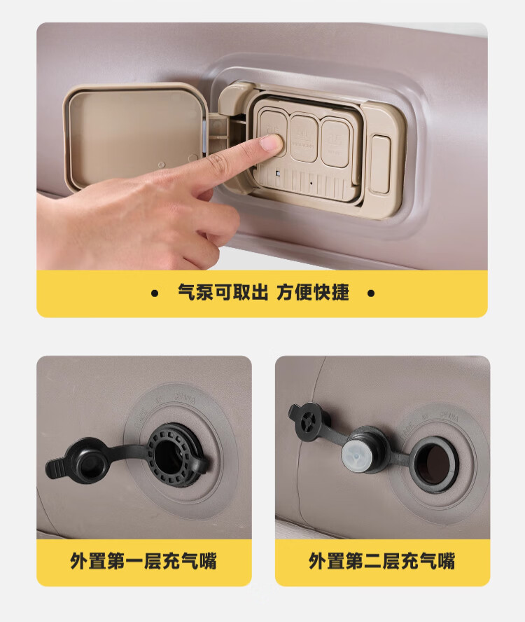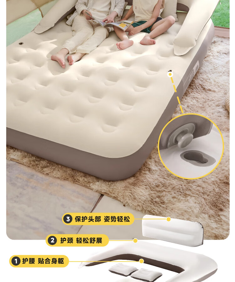 探险者充气床垫自动充气垫床打地铺家用户外露营单双人睡垫子可拆卸 【家庭三人】充气床+靠背+枕头