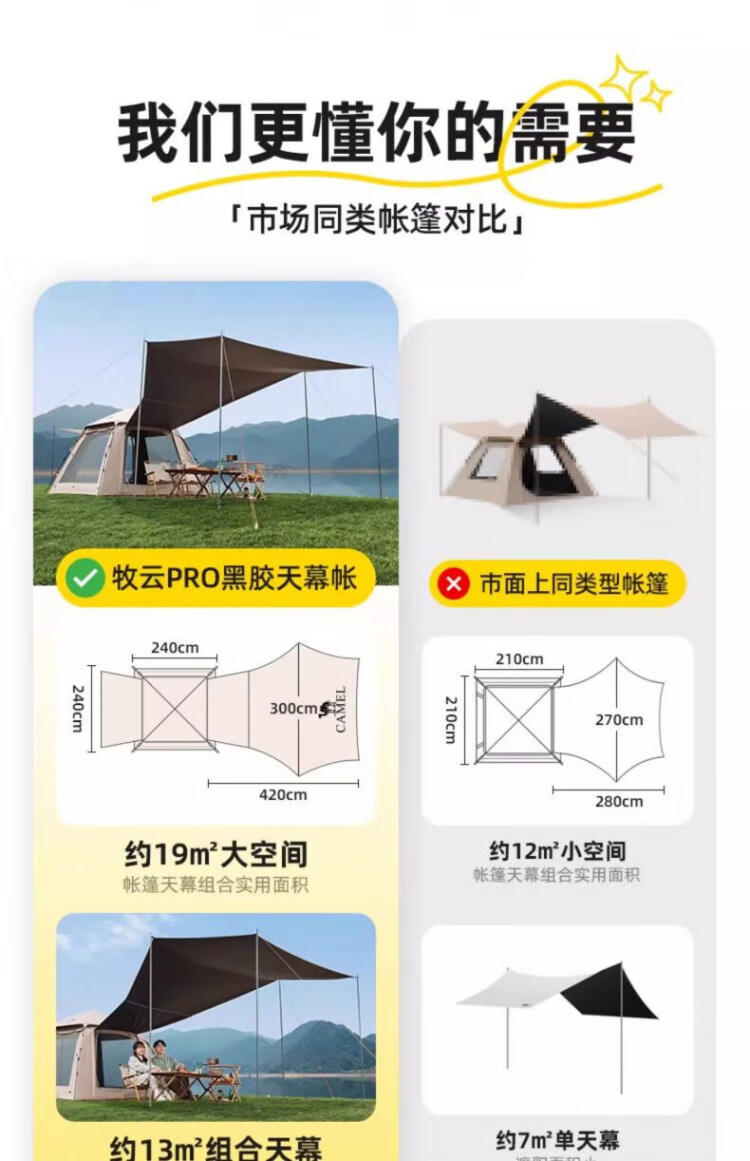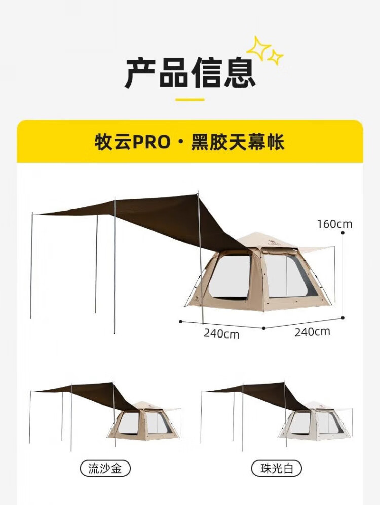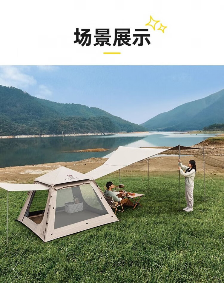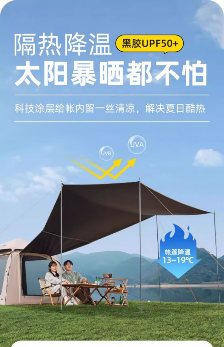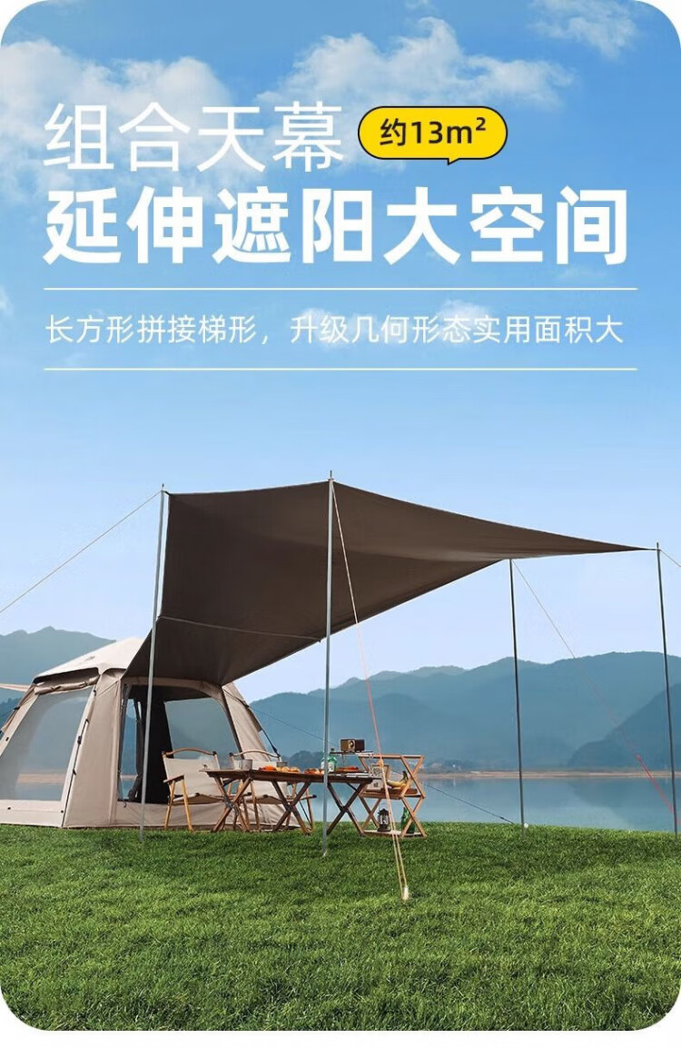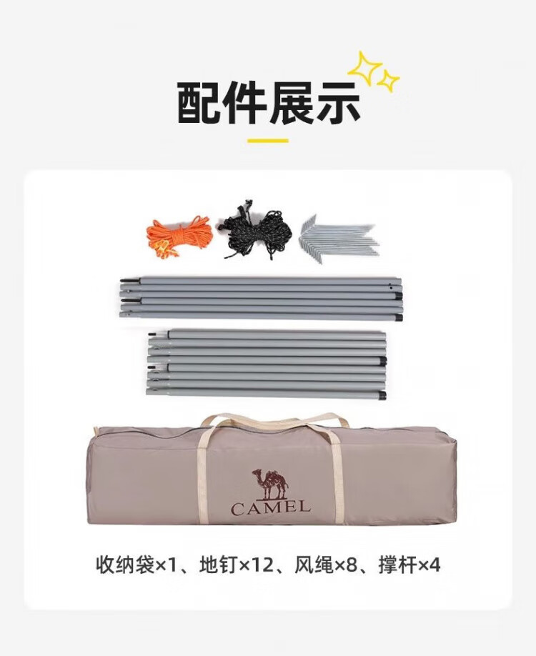 骆驼(CAMEL)户外黑胶天幕帐篷野营过夜便携式防晒防雨公园野餐露营装备 134BA6B631,流沙金