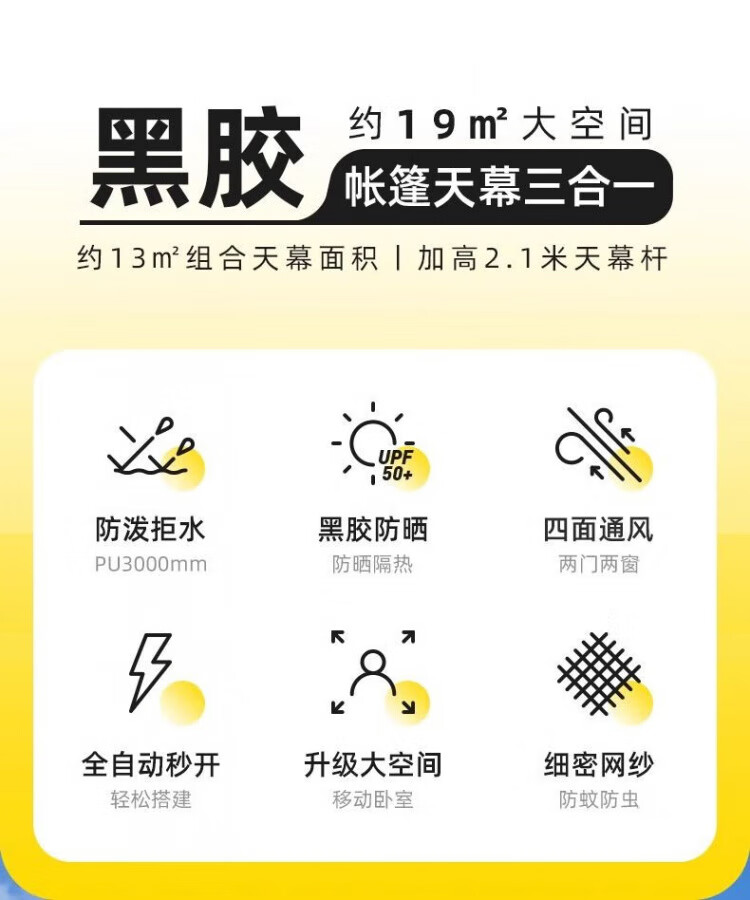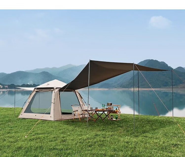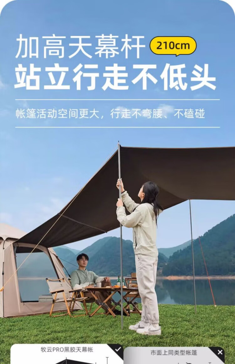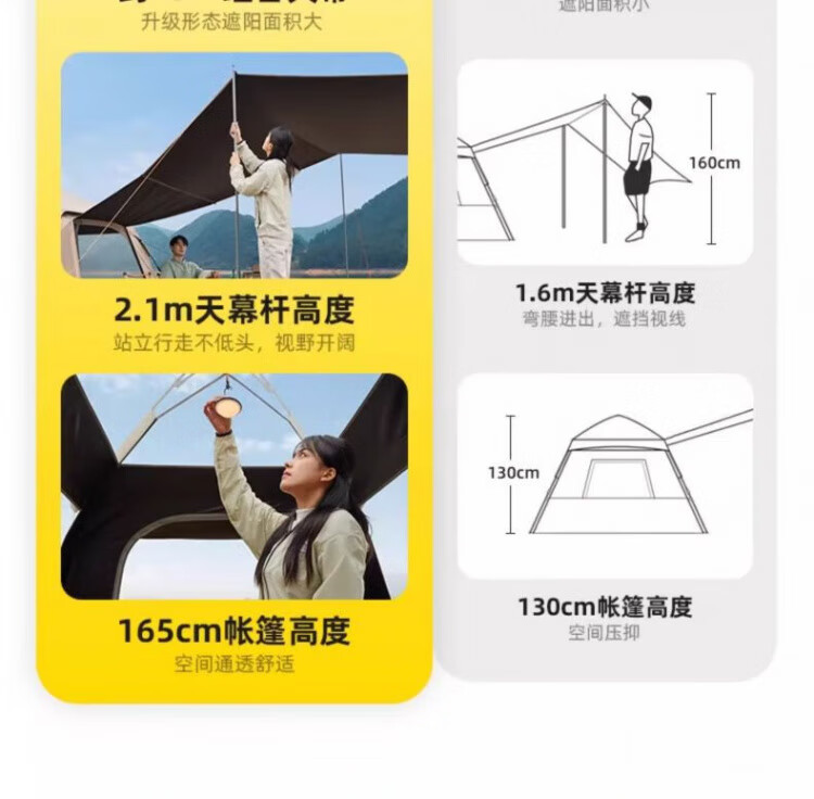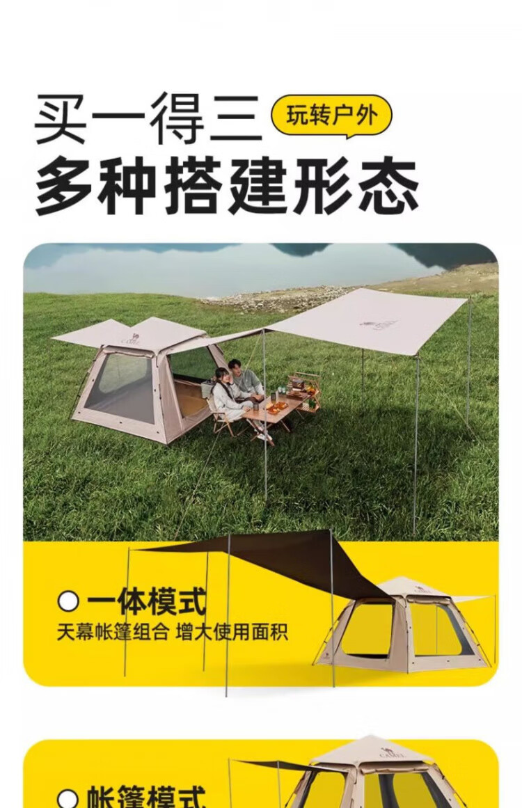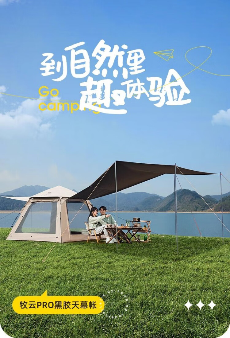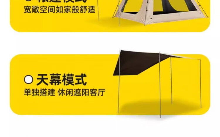 骆驼(CAMEL)户外黑胶天幕帐篷野营过夜便携式防晒防雨公园野餐露营装备 134BA6B631,流沙金