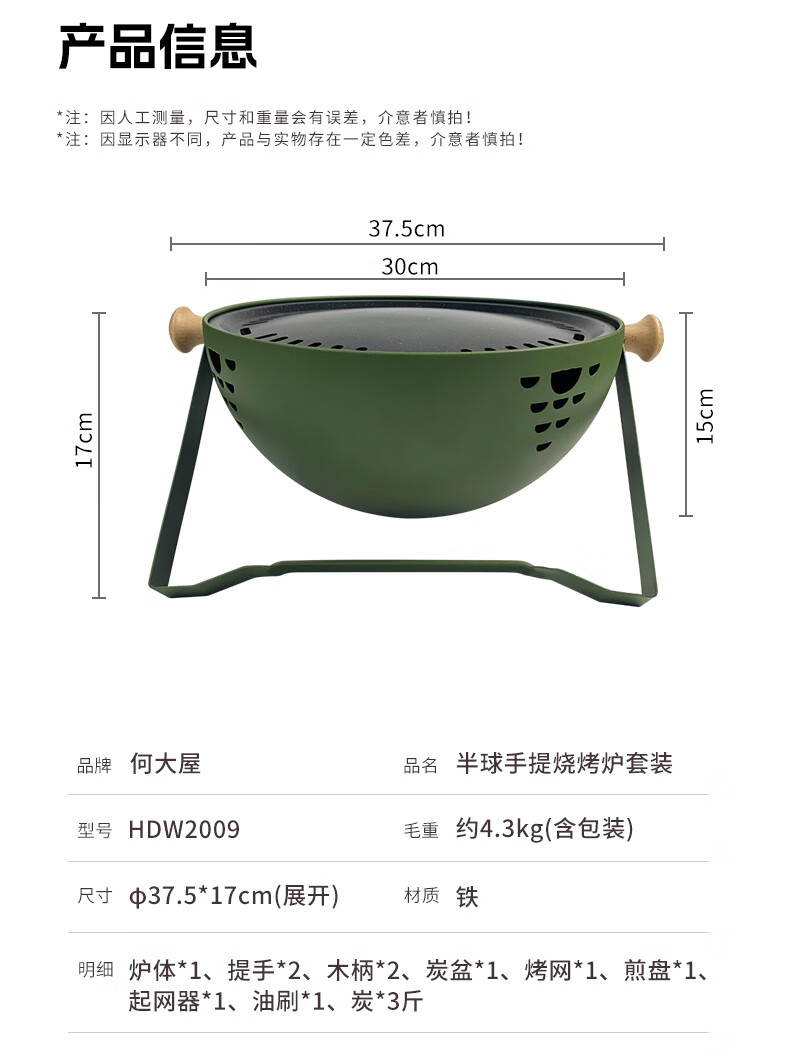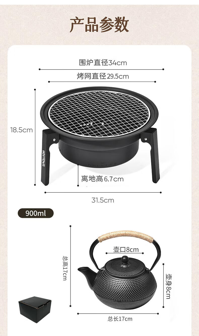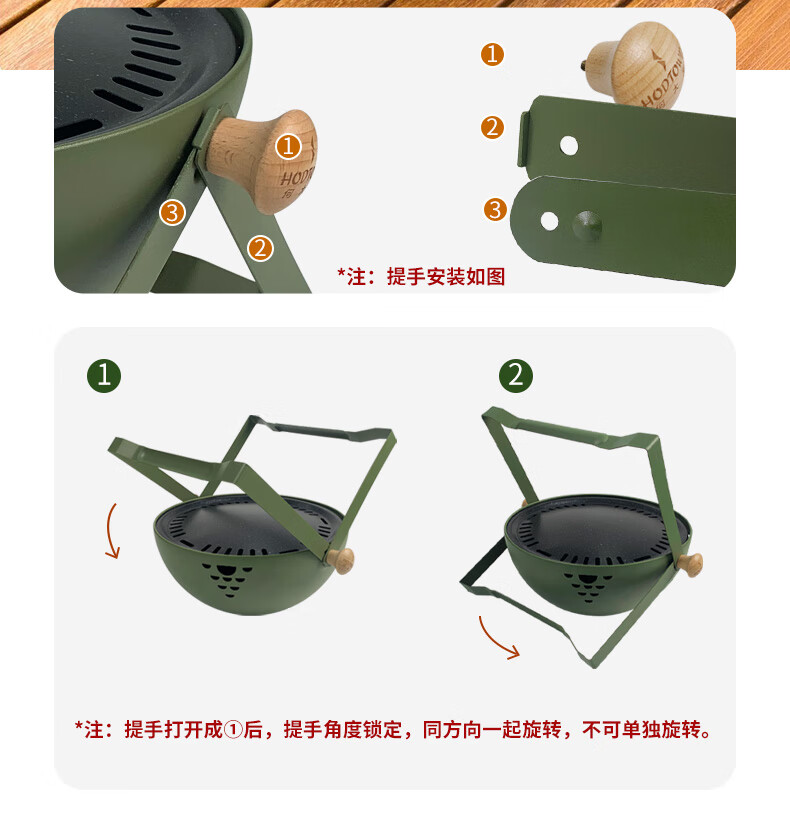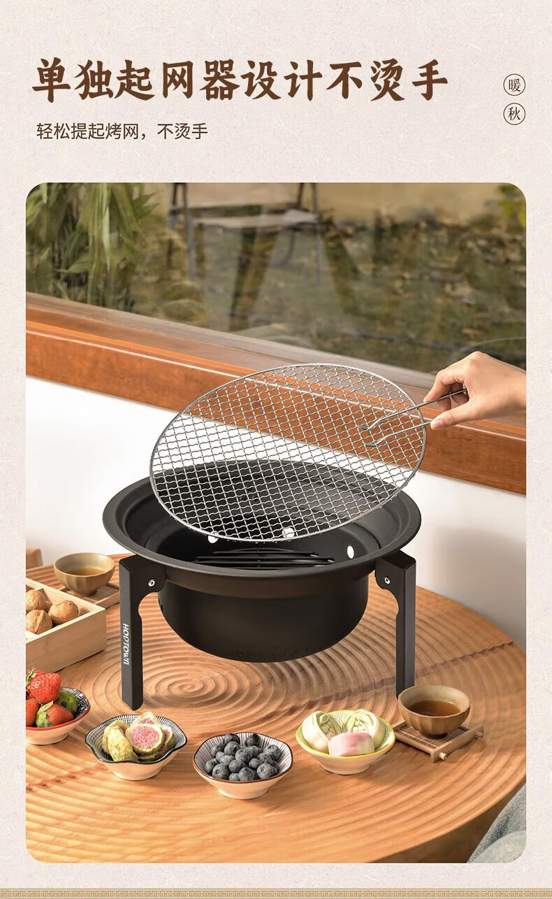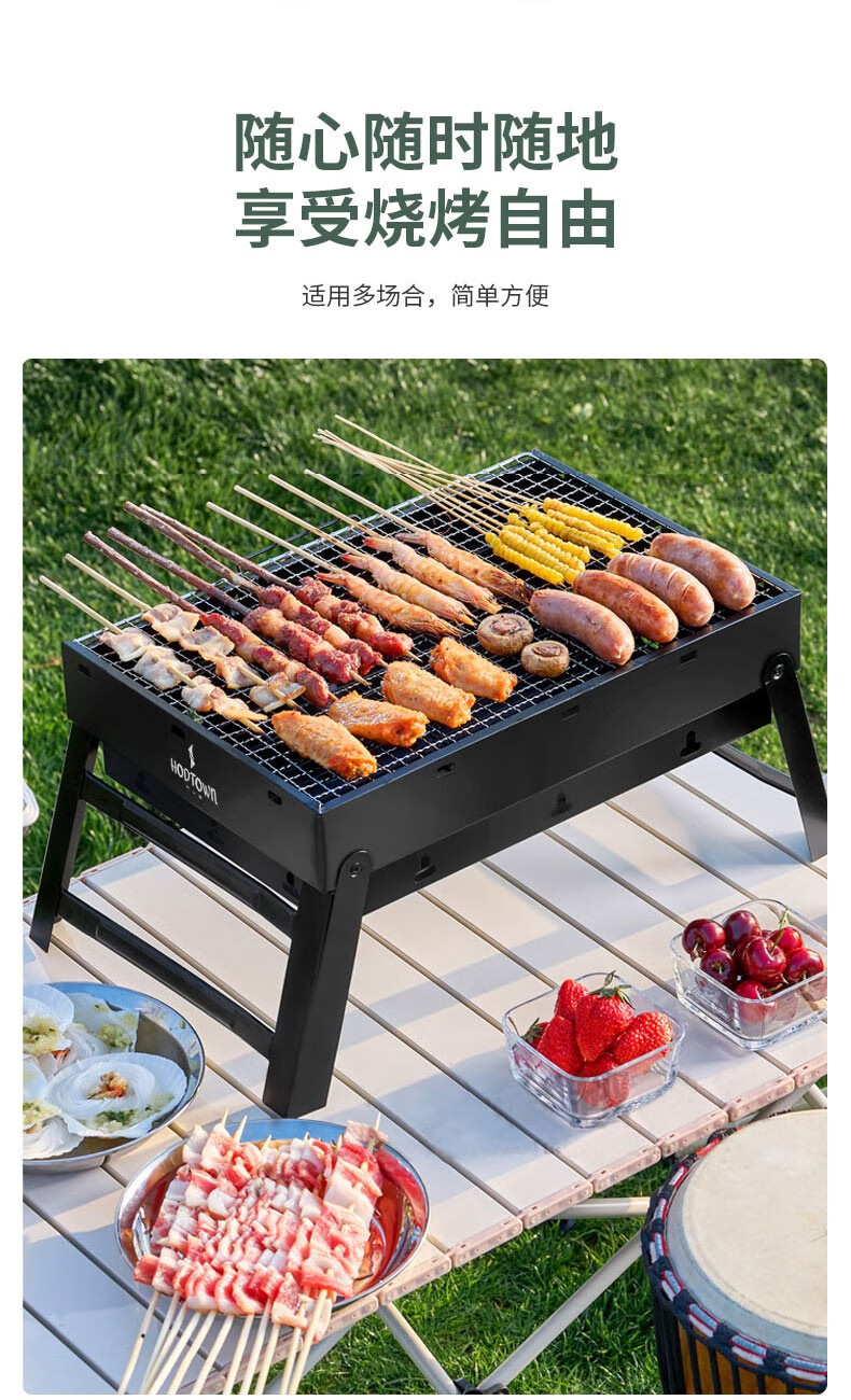何大屋(Hodtown)烧烤炉户外烧烤架木炭烧烤碳烤炉家用便携式小型烤炉烤肉架超轻儿 便携式烧烤炉