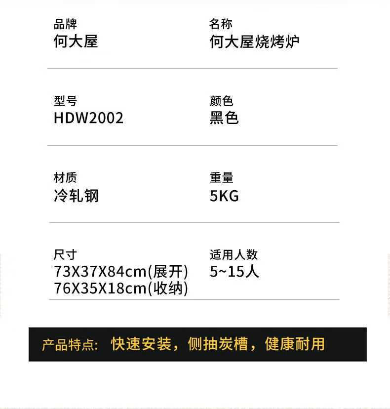 何大屋(Hodtown)烧烤炉户外烧烤架木炭碳烤炉家用便携式烤炉烤肉架HDW2001超轻儿 便携式烧烤炉