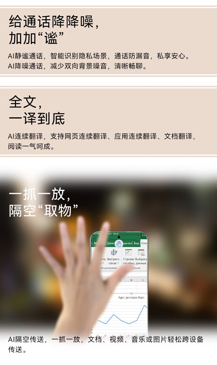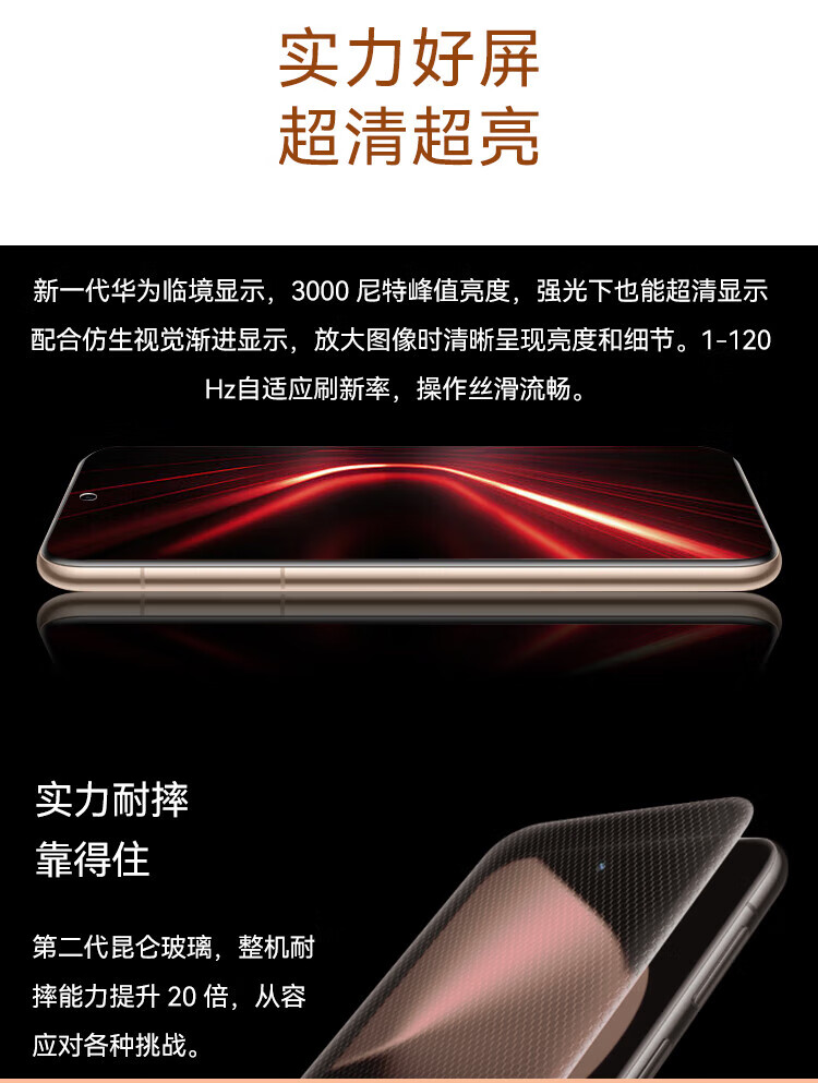 AI大模型,卫星通话,轻薄,LTPO屏幕,高频PWM调光,全焦段影像,潜望式长焦,防水防尘,无线充电,NFC,红外遥控,大底主摄,等深微曲屏
