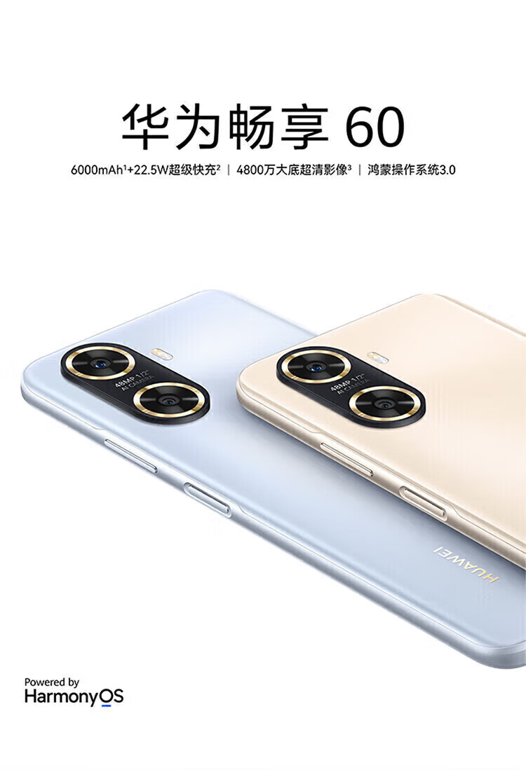 华为(HUAWEI)畅享60/70 6000mAh+66W闪充 4800万大底影像 鸿蒙智能手机老年机 畅享60 冰晶蓝 8GB+256GB