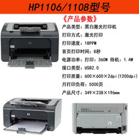HP惠普P1108/1106黑白激光打印机小型办公商用学生家用财务凭证A4 1106(空机不带硒鼓)