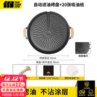 探险者烤盘户外烧烤盘卡式炉烤盘烤肉盘家用烤肉锅煎烤盘电磁炉双用 明火款滤油烤盘32CM+吸油纸
