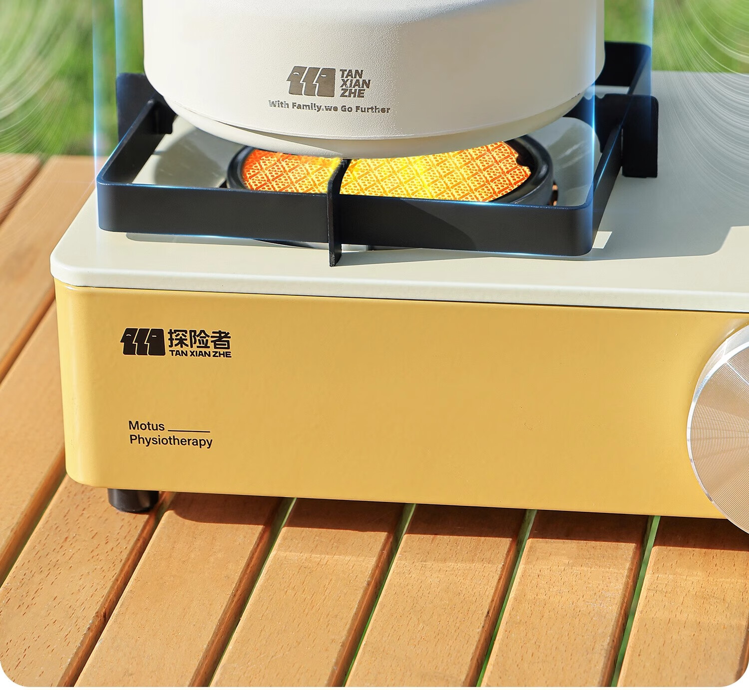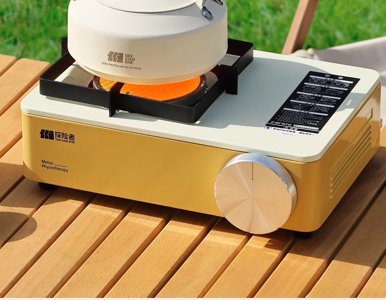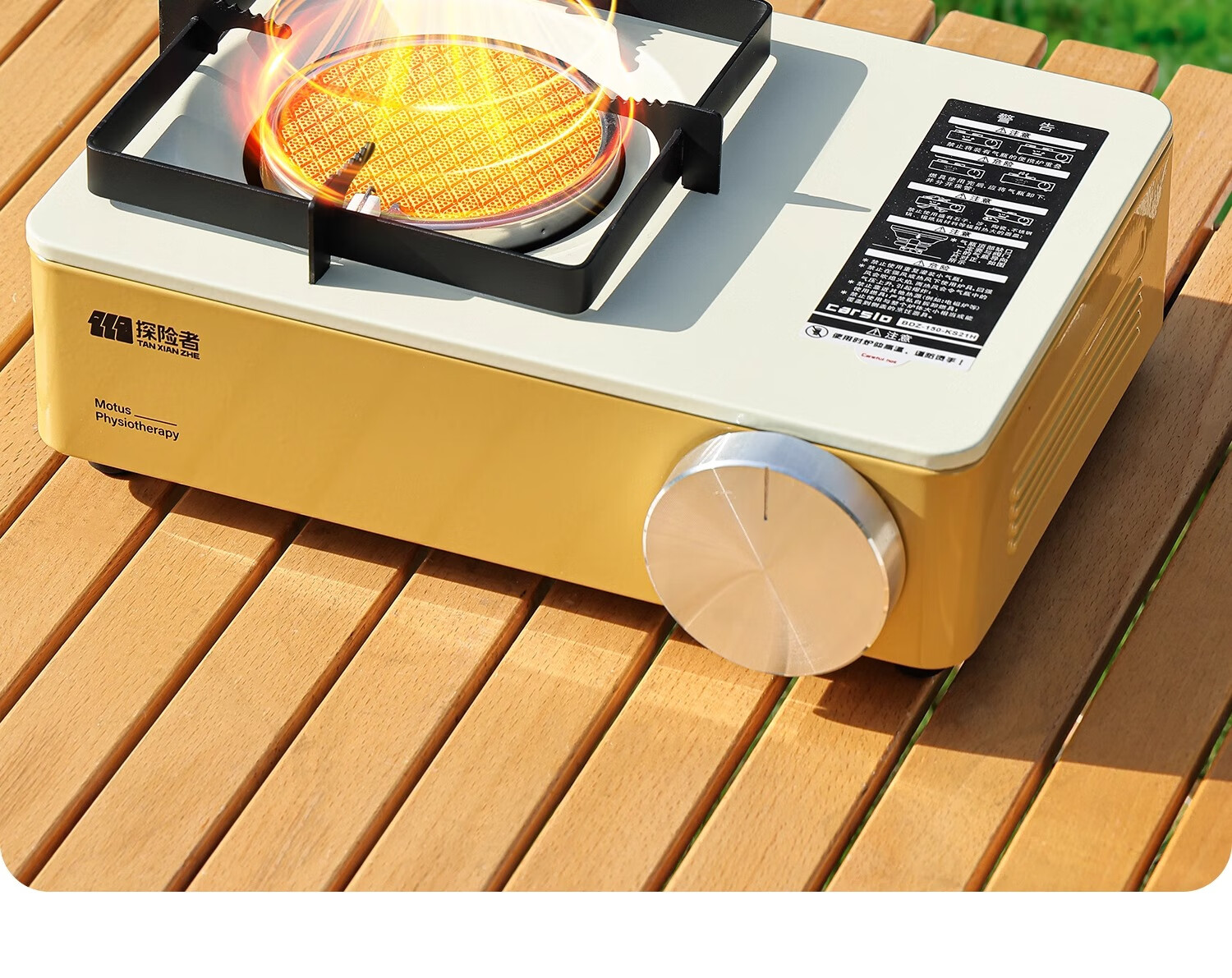 探险者防爆卡式炉户外卡磁炉便携式野外露营炉具套装红外线防风卡斯炉 【靓丽黄】卡式炉+2气+烤盘+箱